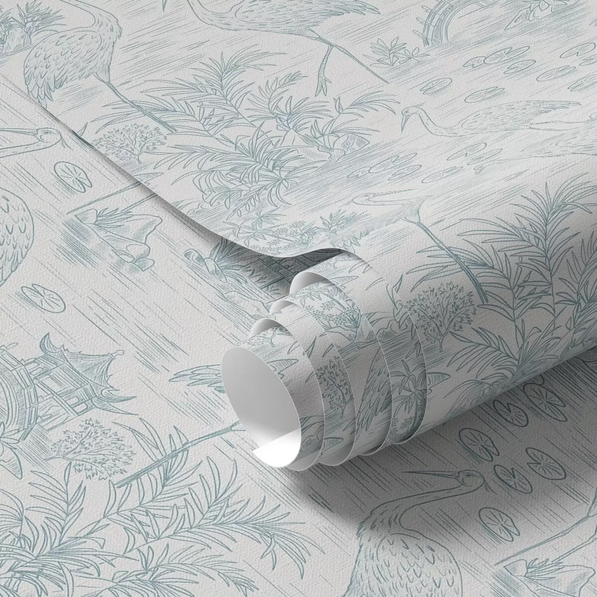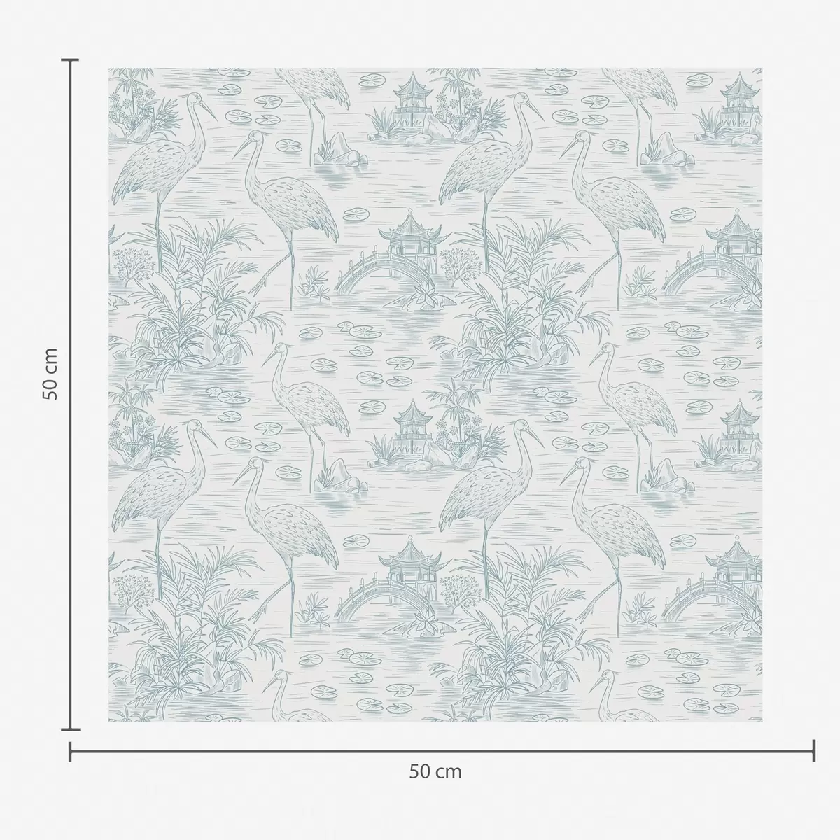 Tapetes Āzijas ainava ar dzērvēm, tiltiem un lotosiem Nr. a00405