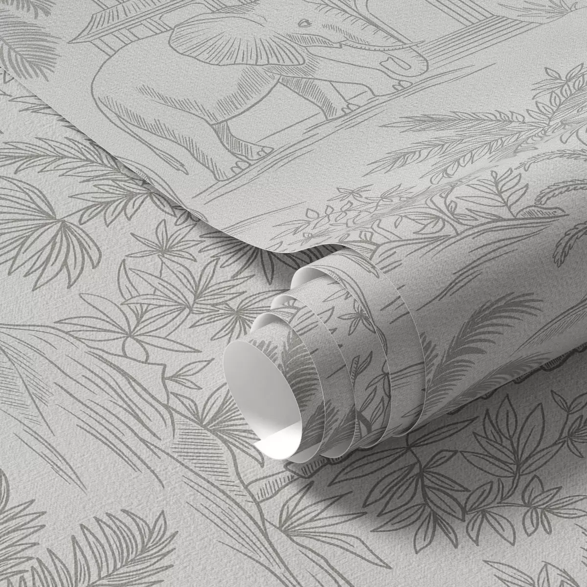Tapetes Vienkrāsaini ziloņi un džungļi grafiskā stilā Nr. a00410