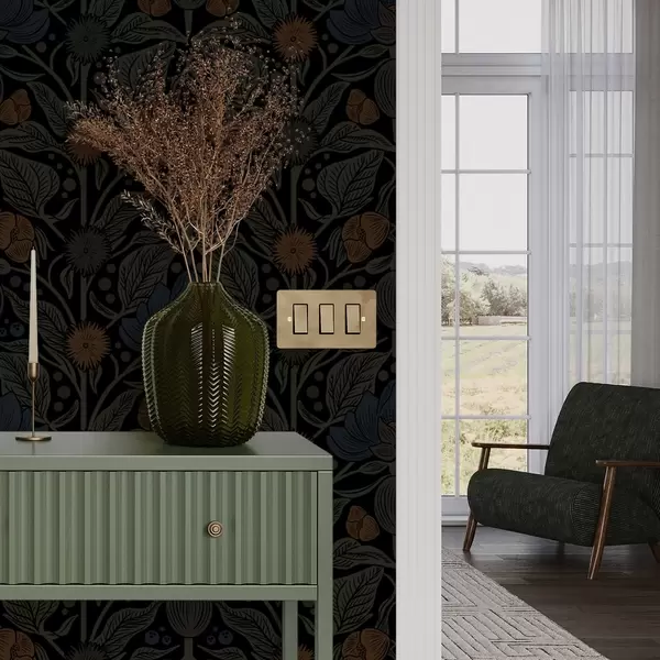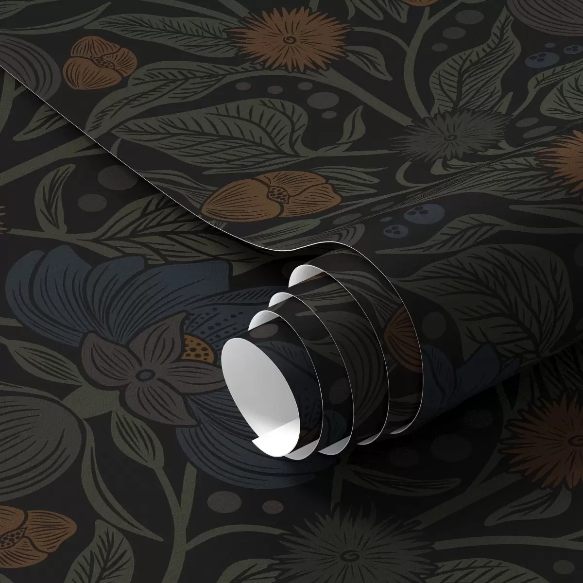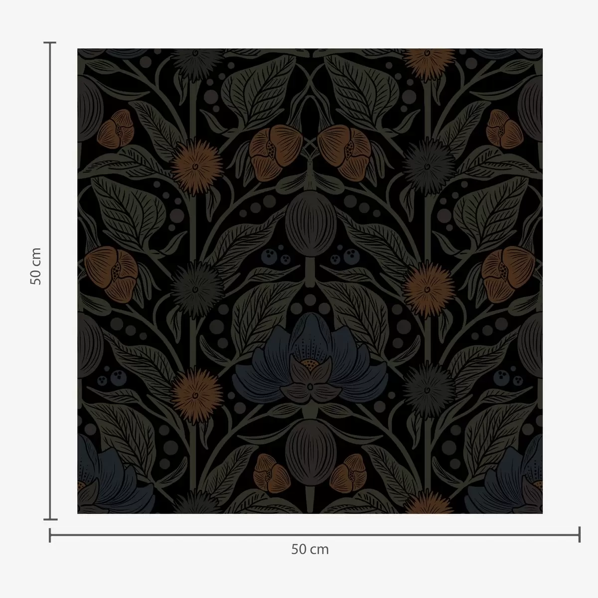 Tapetes Tumšs ziedu ornaments ar oranžiem akcentiem Nr. a00411