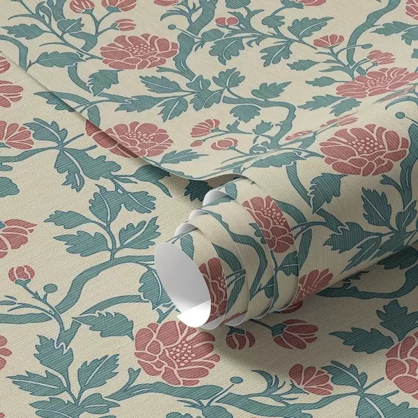 Tapetes Dekoratīvi rozā ziedi uz bēša fona Nr. a00414