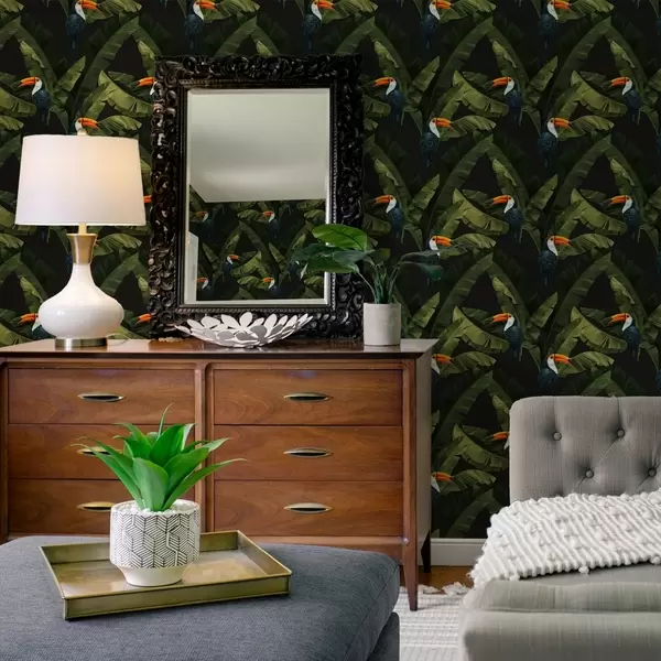 Tapetes Tukāns tropu lapās Nr. a00415