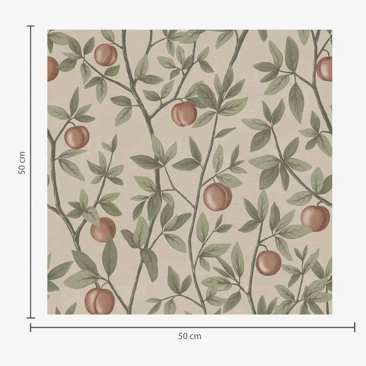 Tapetes Persiki uz zariem ar zaļām lapām uz bēša fona Nr. a00429