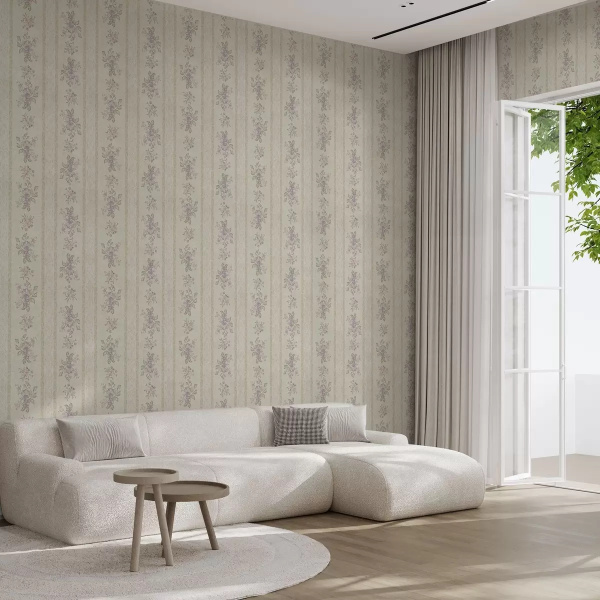 Tapetes Vintage ziedi uz svītraina fona ar ornamentu Nr. a00440