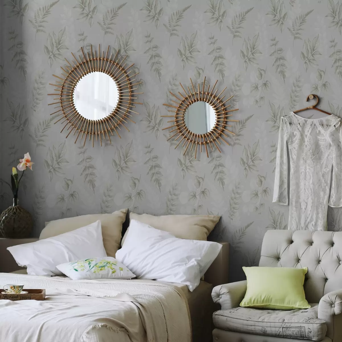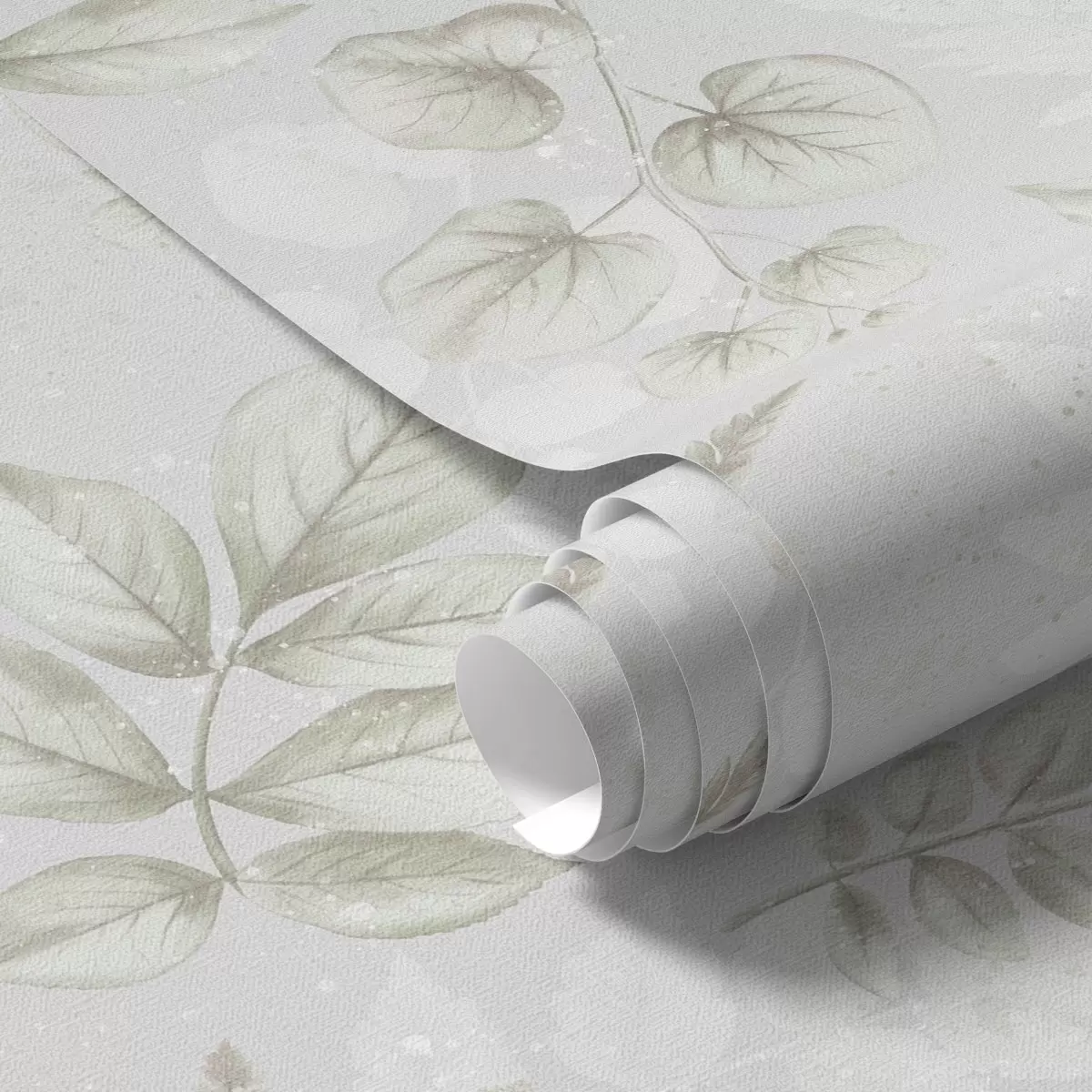 Tapetes Vieglas akvareļa lapas ar šļakatu efektu uz pelēka fona Nr. a00446