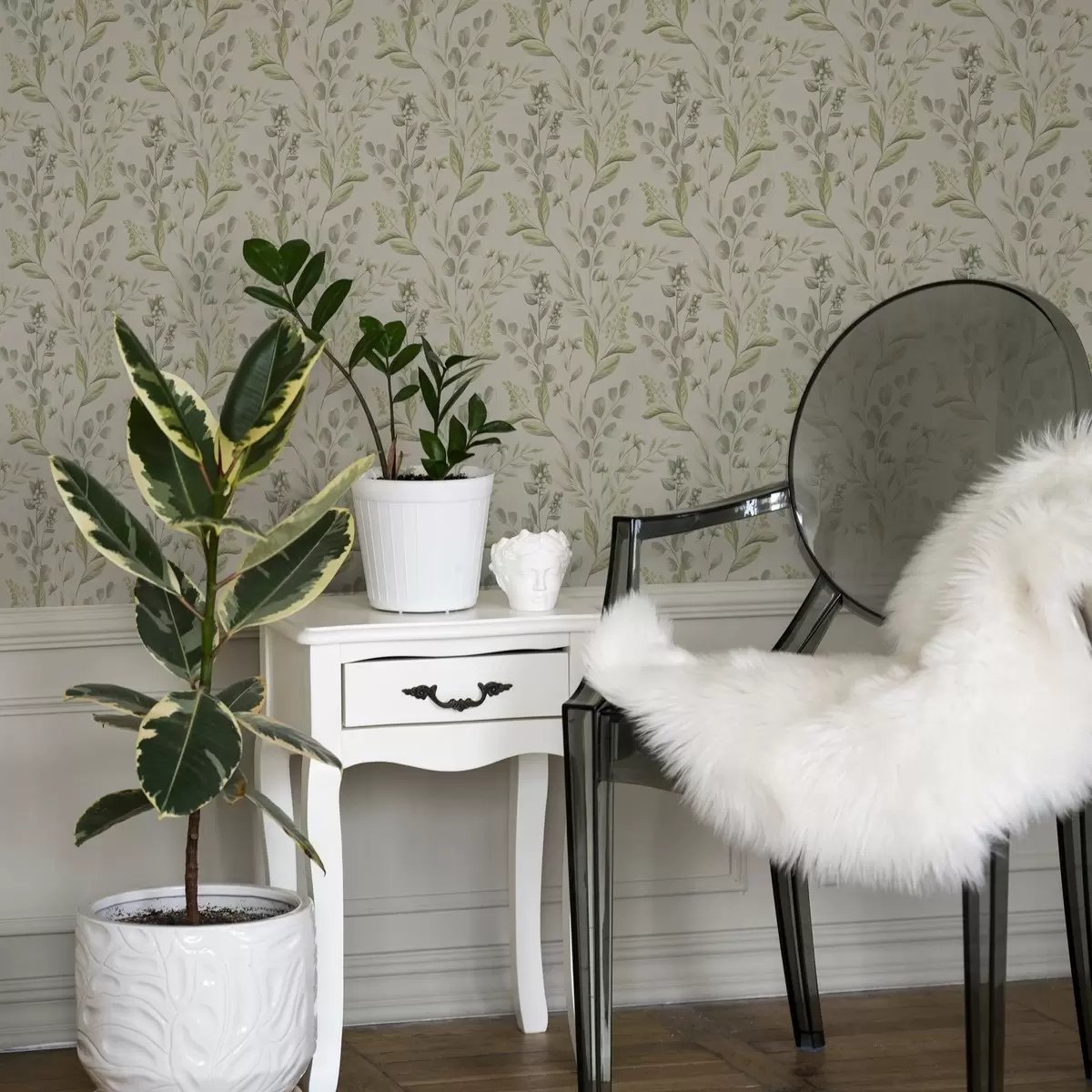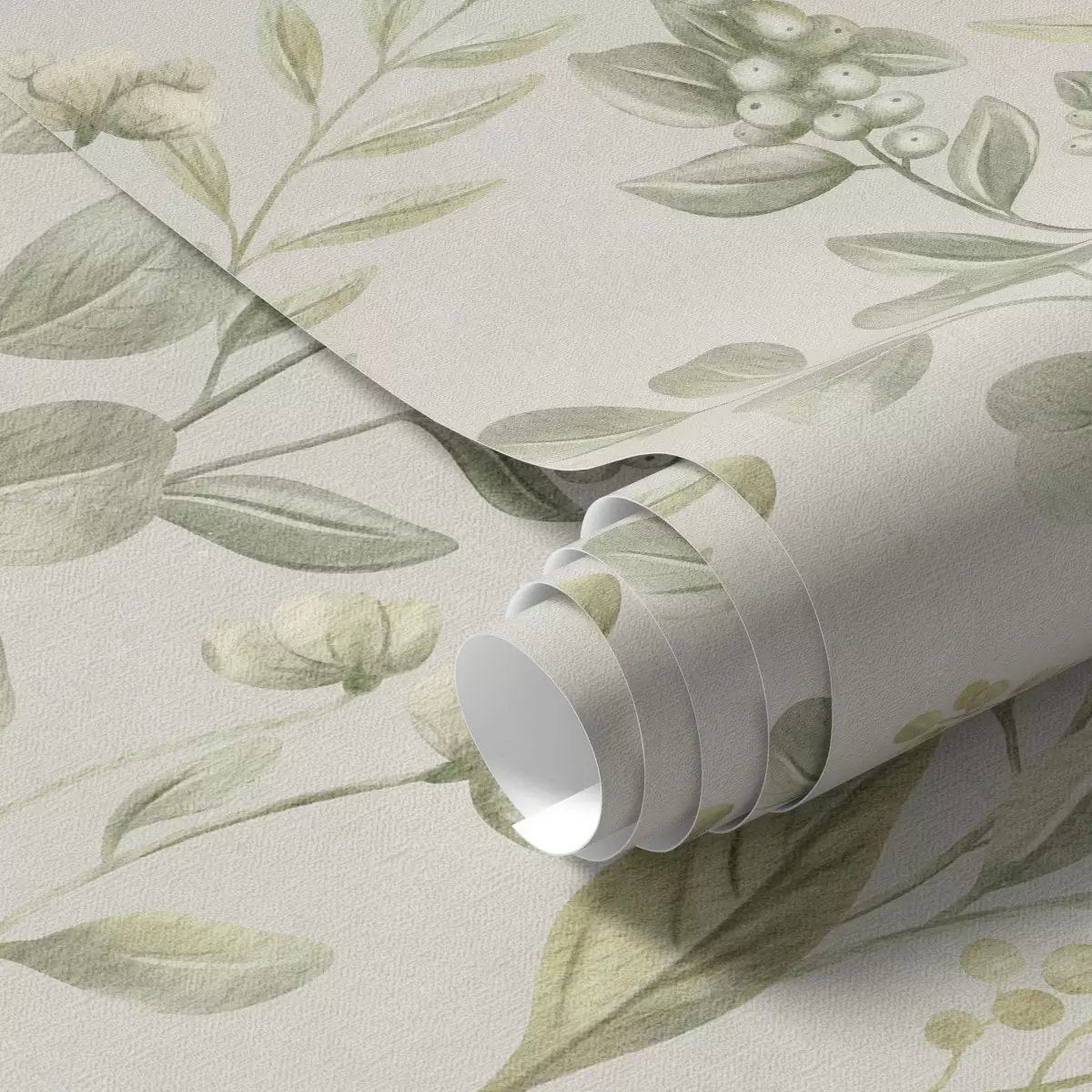 Tapetes Bāli zaļš eikalipts akvarelī zaļš eikalipts akvarelī ar botānisku rakstu Nr. a00449