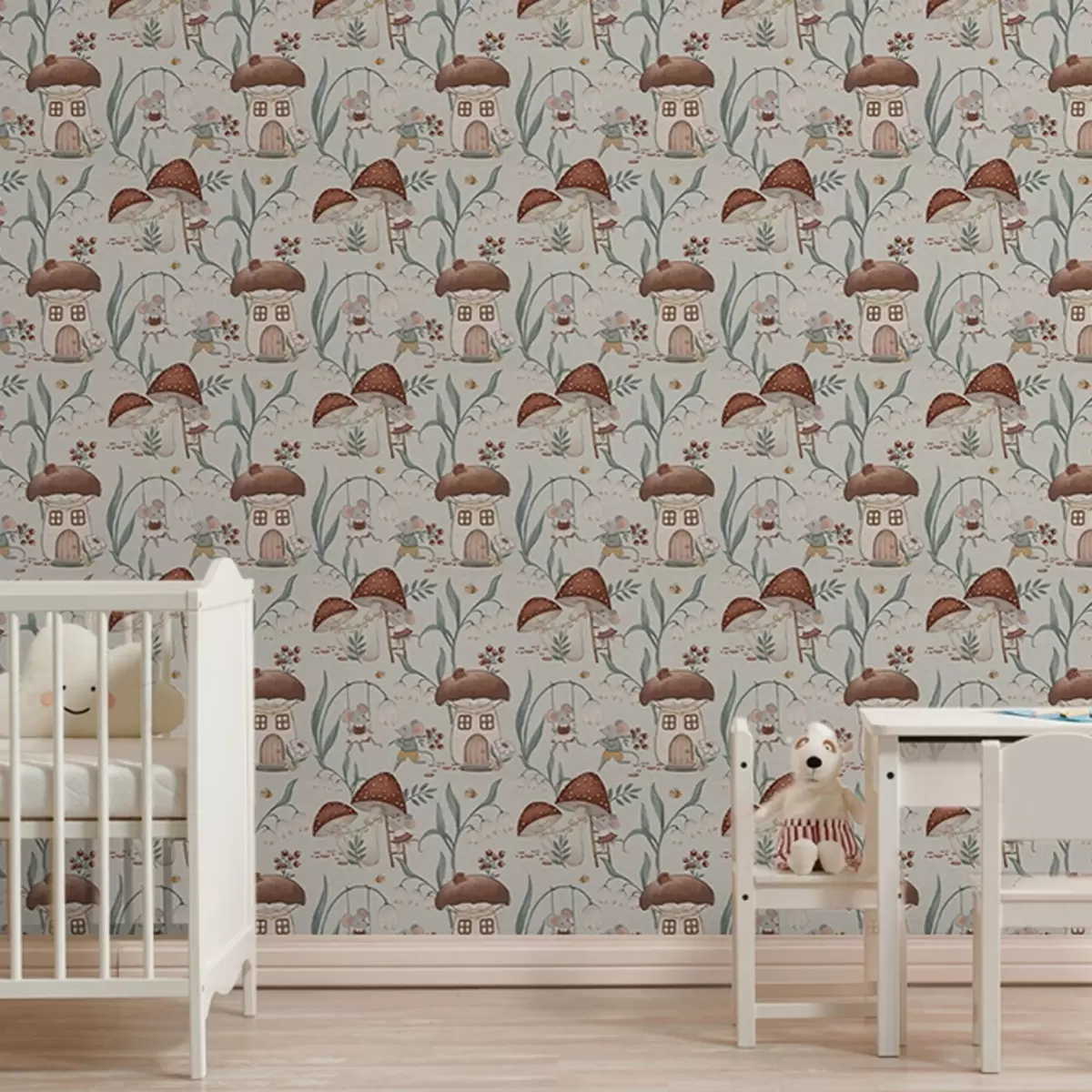 Tapetes Gudras peles un sēnes uz iedomātā meža ainavas fona Nr. a00450