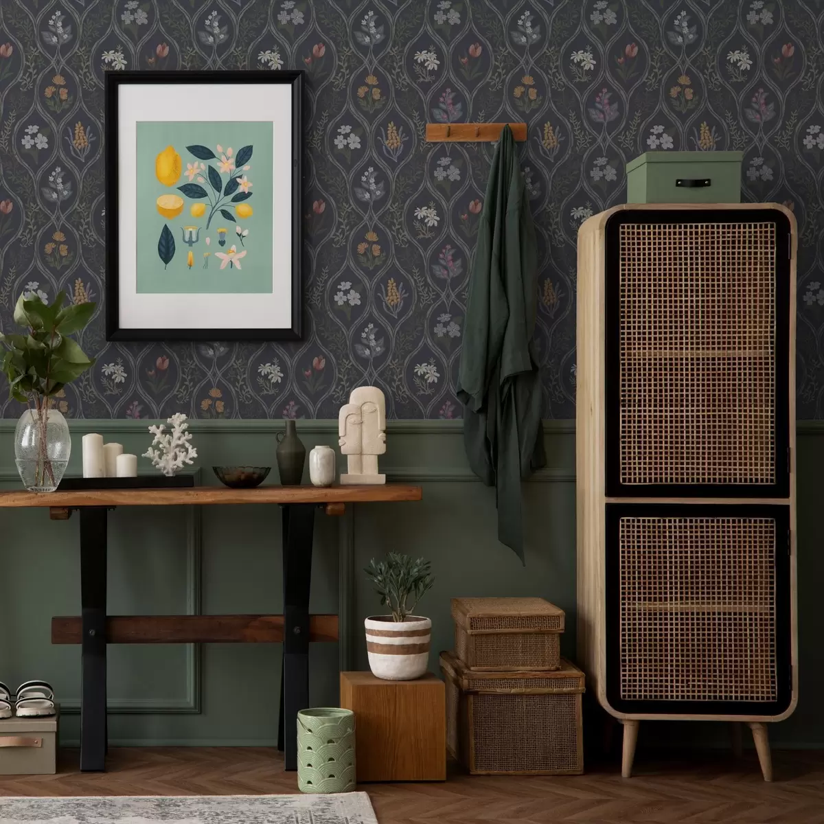 Tapetes Tumšs vintage rāmis ar krāsainiem dārza ziediem Nr. a00454