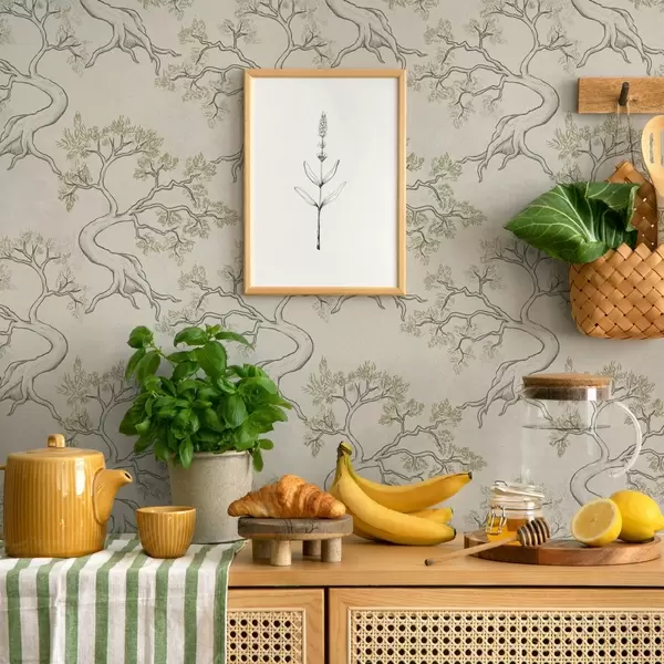 Tapetes Vienkrāsaini koki ar izdomātiem izliektiem stumbriem Nr. a00468