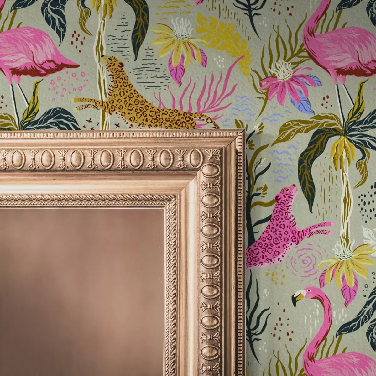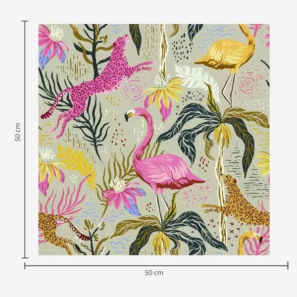 Tapetes Spilgti flamingi un leopardi starp tropu augiem Nr. a00470
