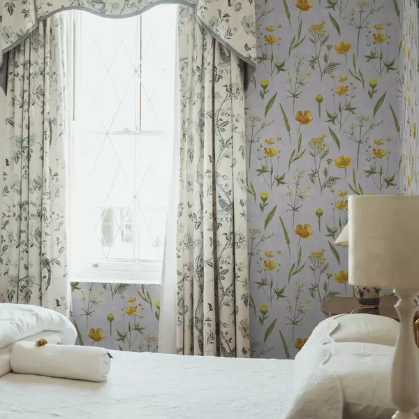 Tapetes Dzelteni ziedi un zaļumi uz gaiši pelēka fona Nr. a00472