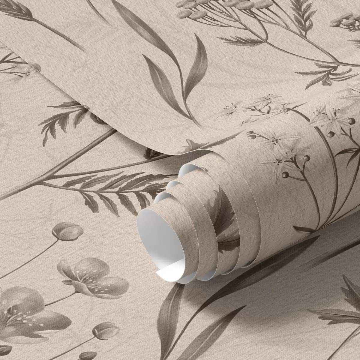 Tapetes Dzelteni ziedi un zaļumi pelēki brūnos toņos Nr. a00472v1