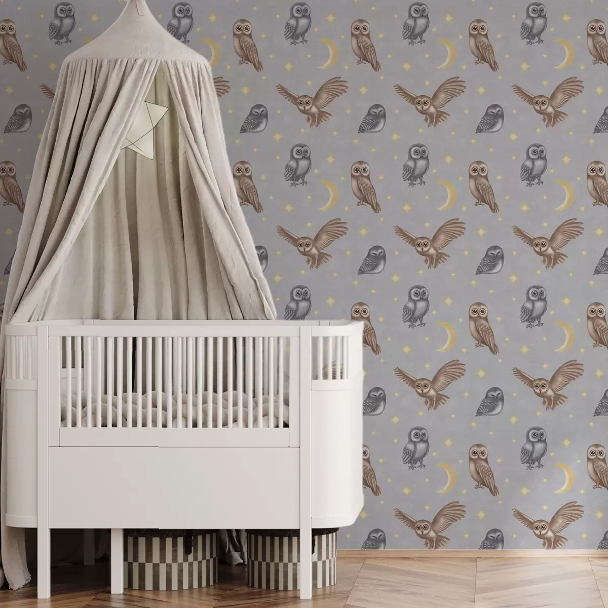 Tapetes Pūces un zvaigznes uz pelēka nakts debesu fona Nr. a00475
