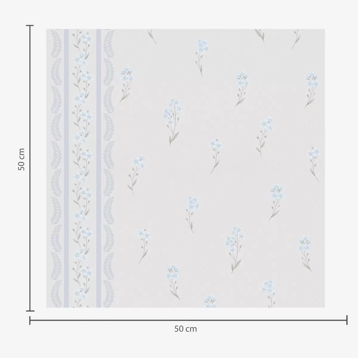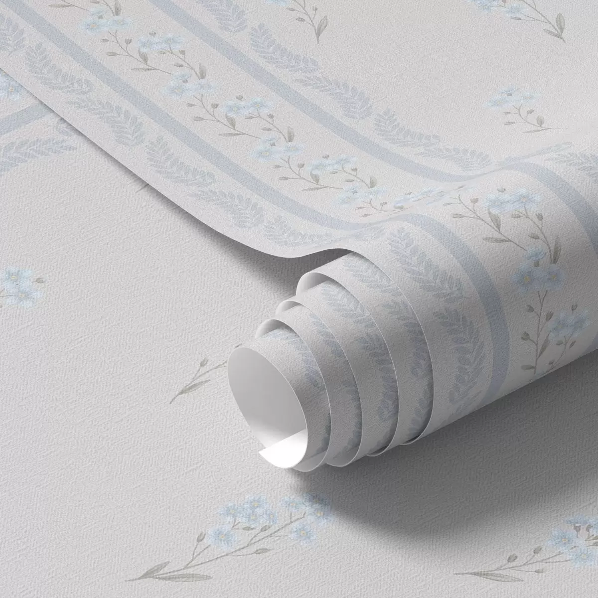 Tapetes Balts fons ar ziliem ziediem un dekoratīvu svītru Nr. a00484v1
