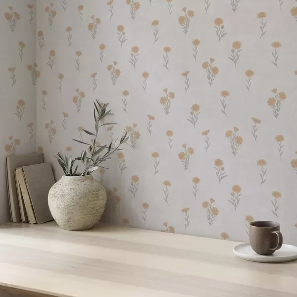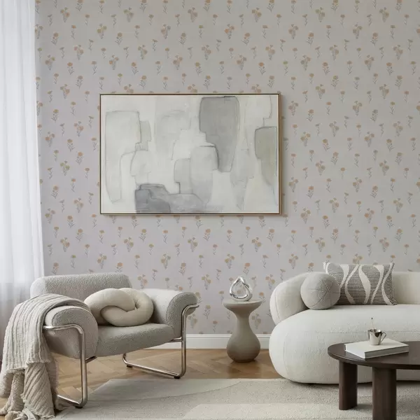 Tapetes Nelieli oranži ziedi uz gaiši pelēka fona Nr. a00486