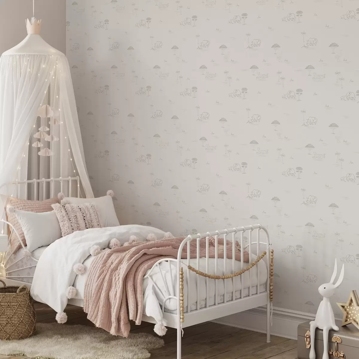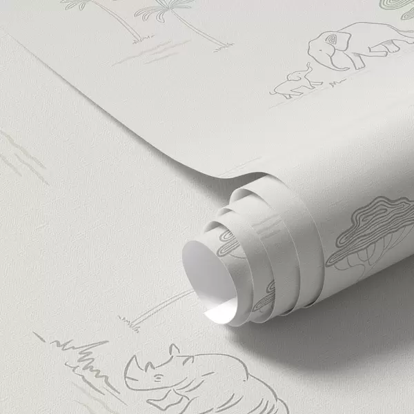 Tapetes Minimālistisks safaris: ziloņi, degunradži, leopardi un palmas Nr. a00492