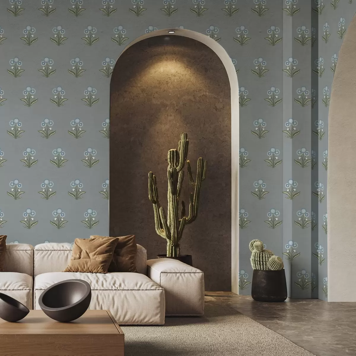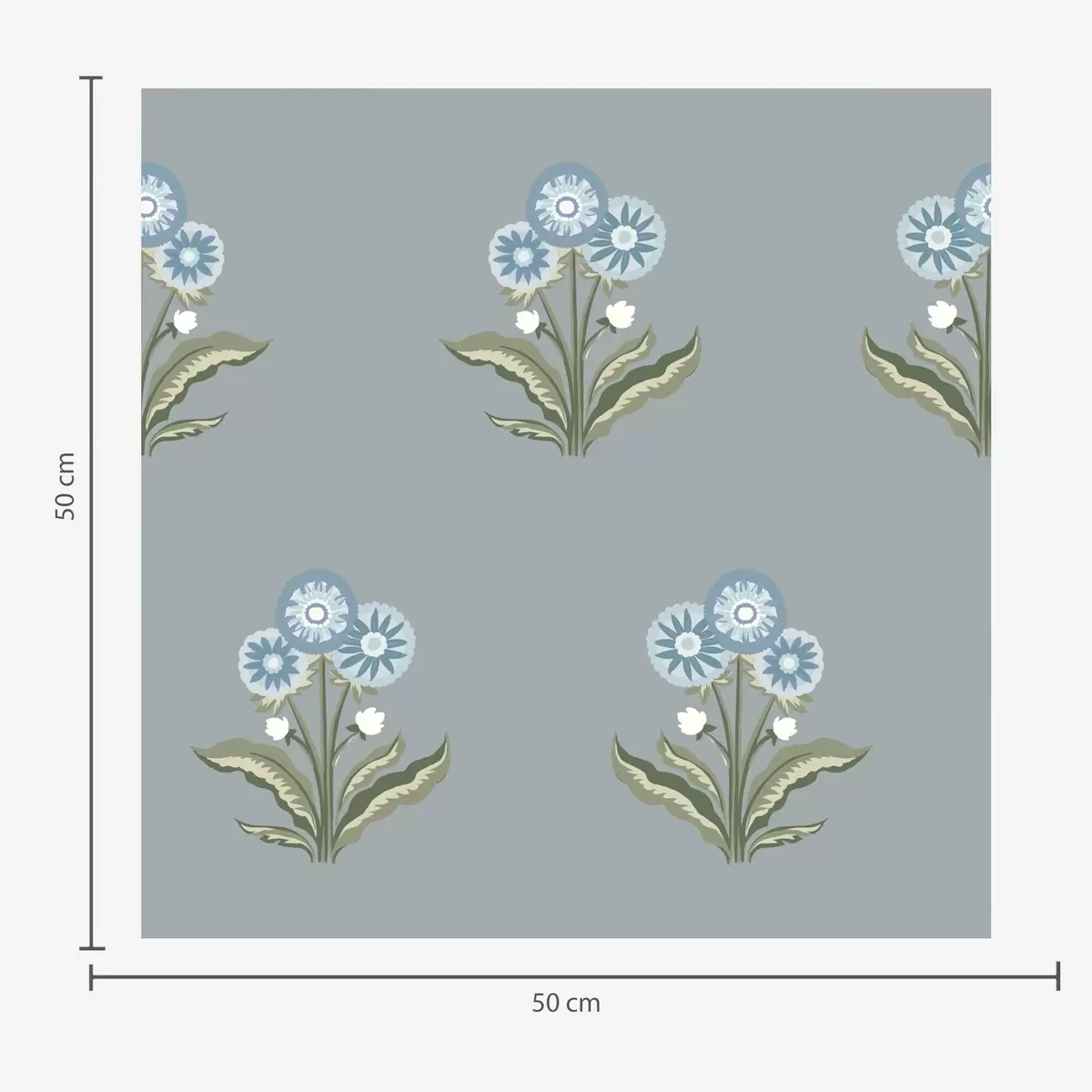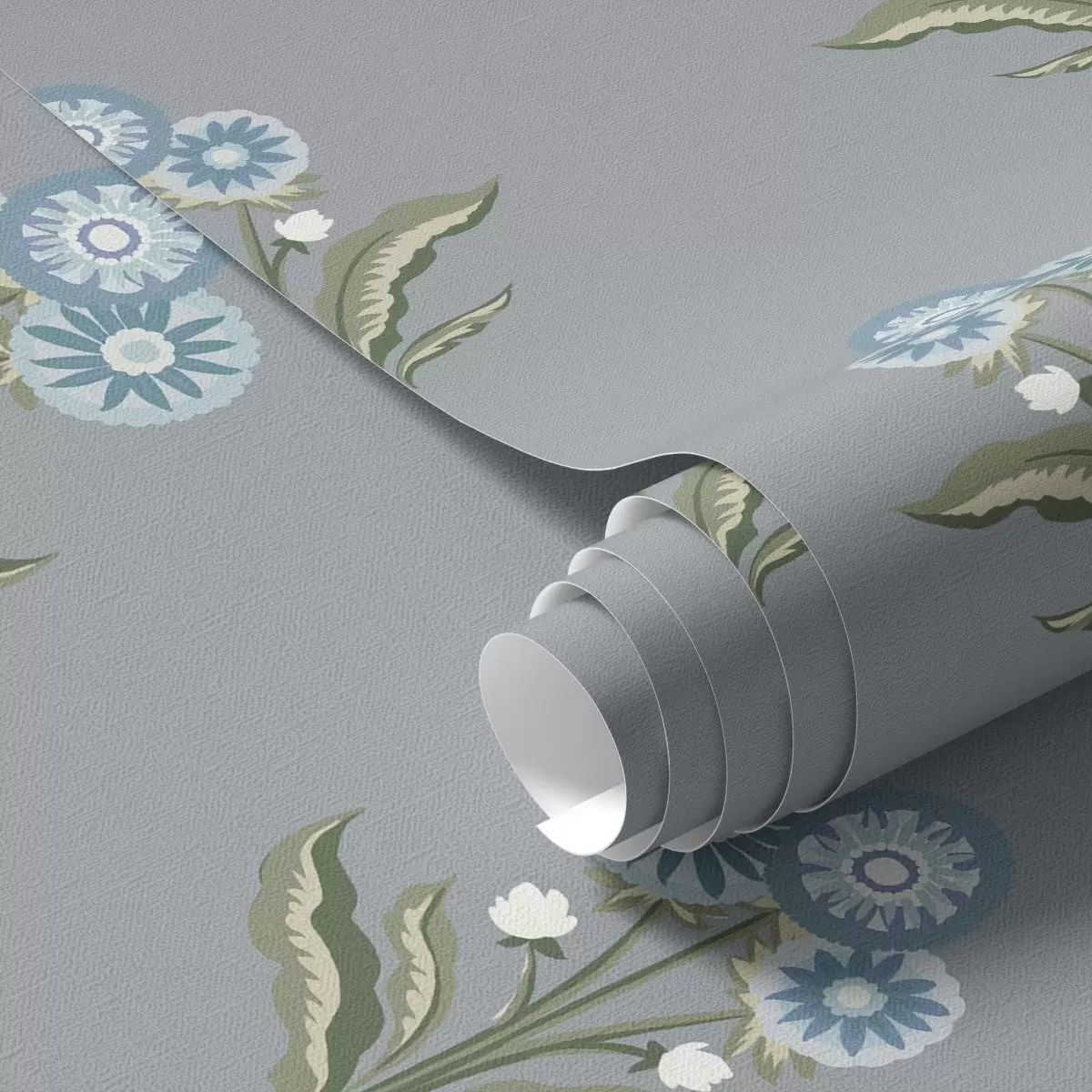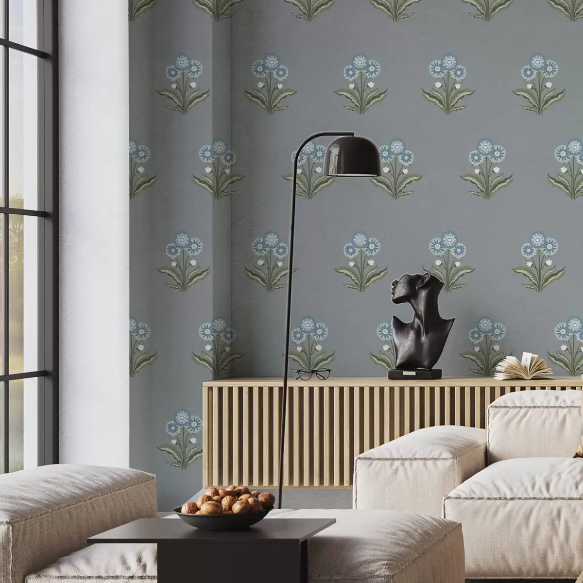 Tapetes Stilizēti ziedi uz pelēkā-zila fona, vēsā krāsu gamma Nr. a00494v1