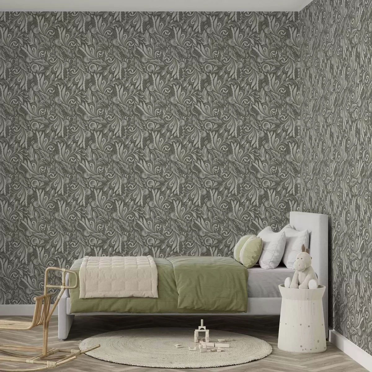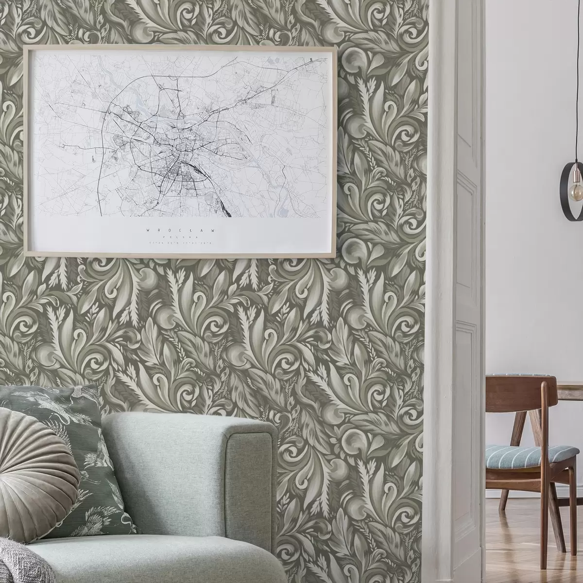 Tapetes Akantu volūtas olīvu-bēša toņu paletē Nr. a00501