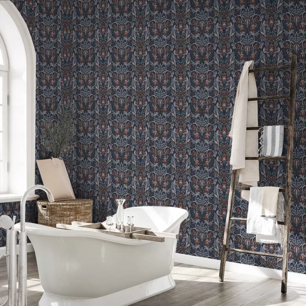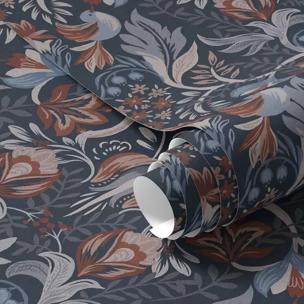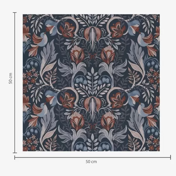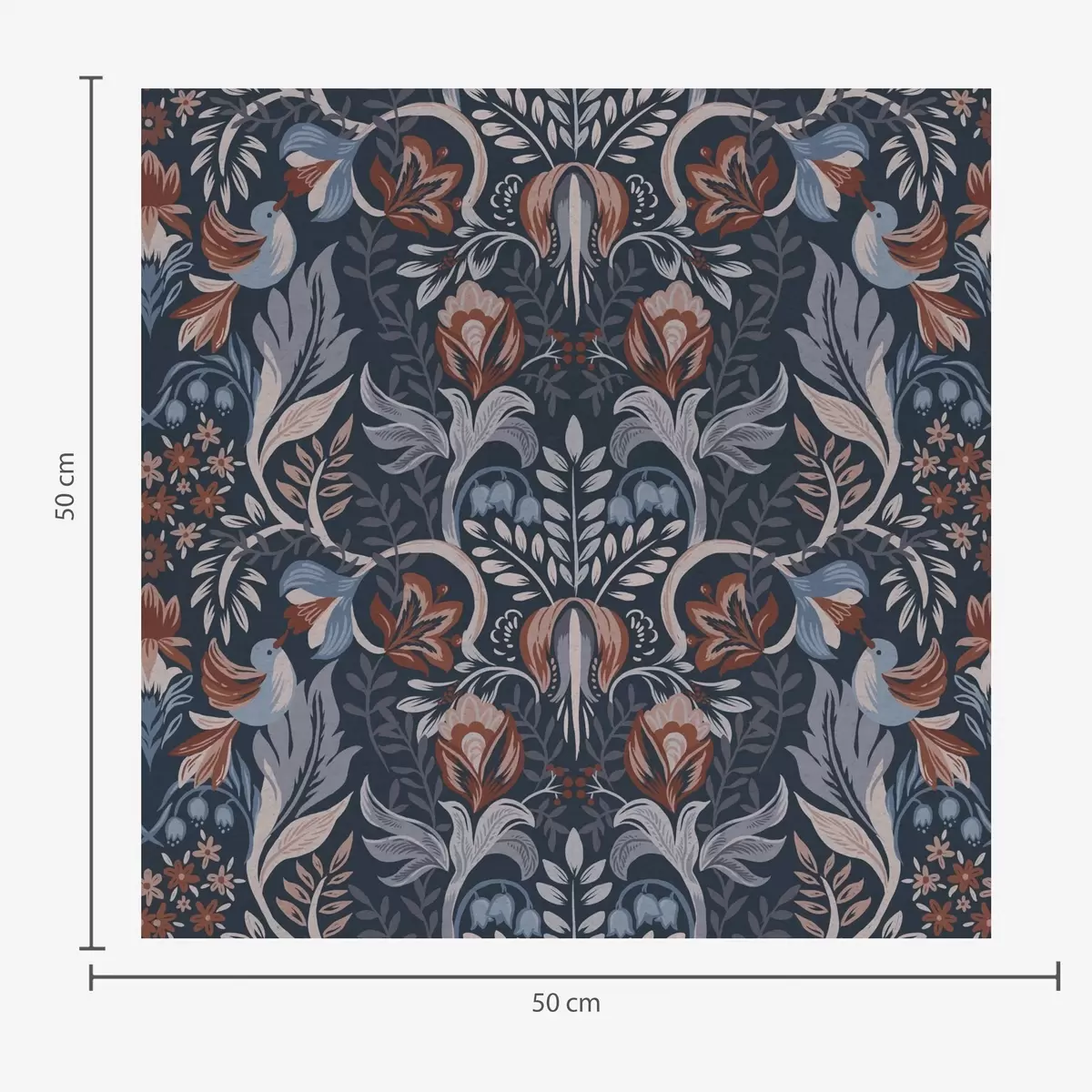 Tapetes Tautas ornamentu ar putniem, tumši indigo Nr. a00502v1