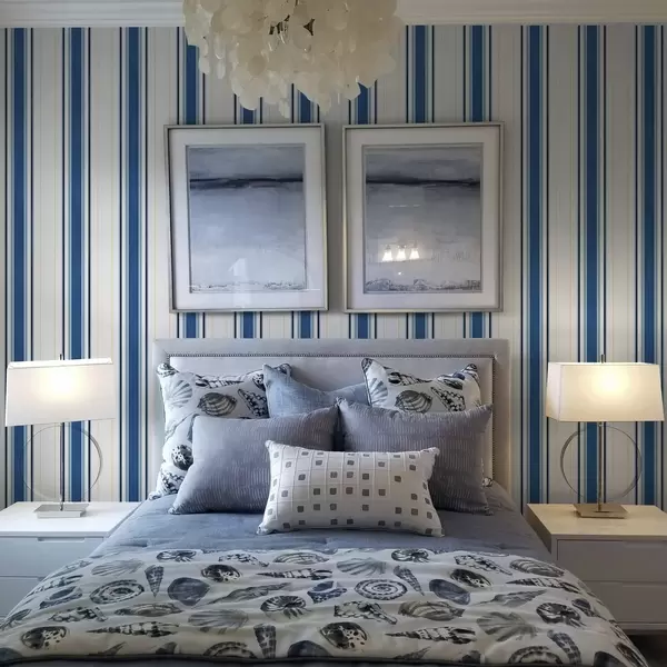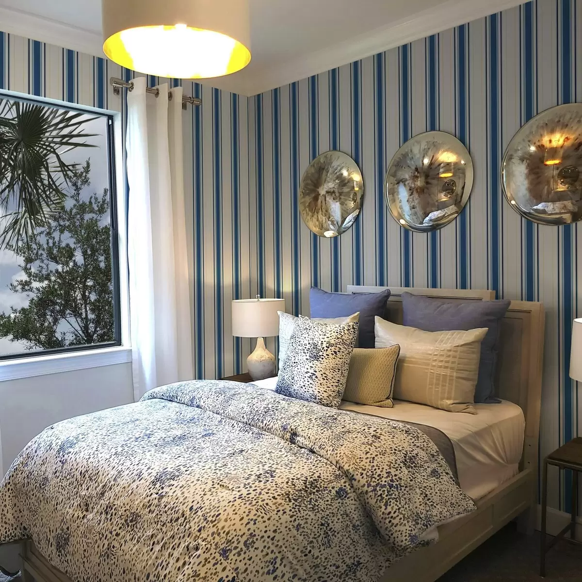 Tapetes Platas zilas svītras ar plānām dzeltenām līnijām Nr. a00522