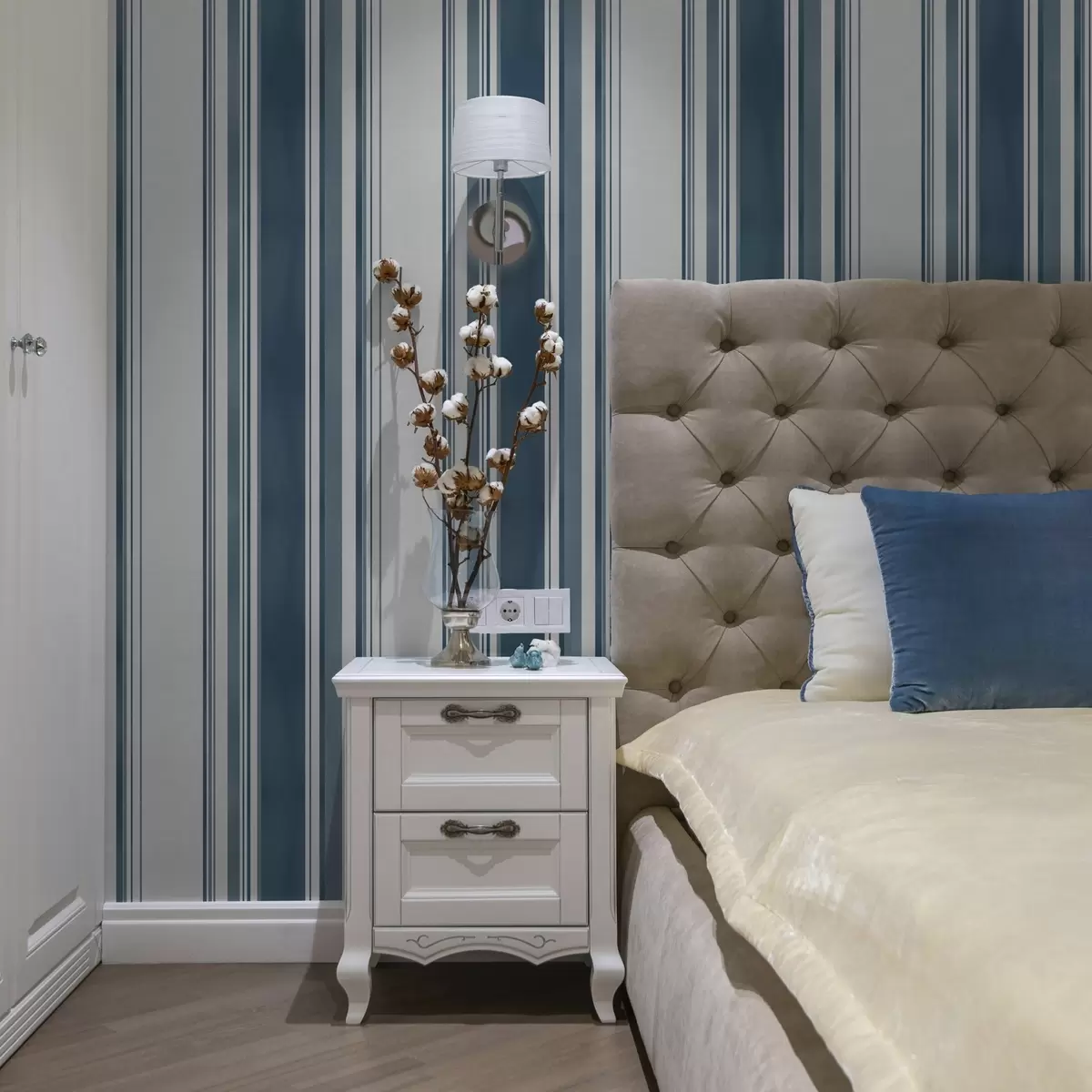 Tapetes Zilas svītras ar baltām atstarpēm Nr. a00525