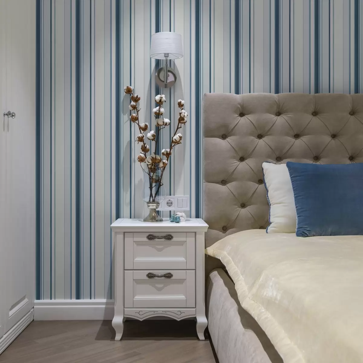 Tapetes Dažāda platuma tirkīza un zilas svītras uz gaiša fona Nr. a00530