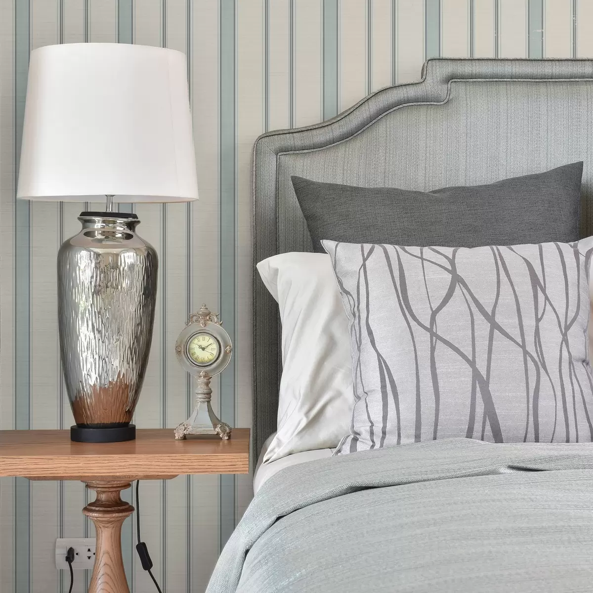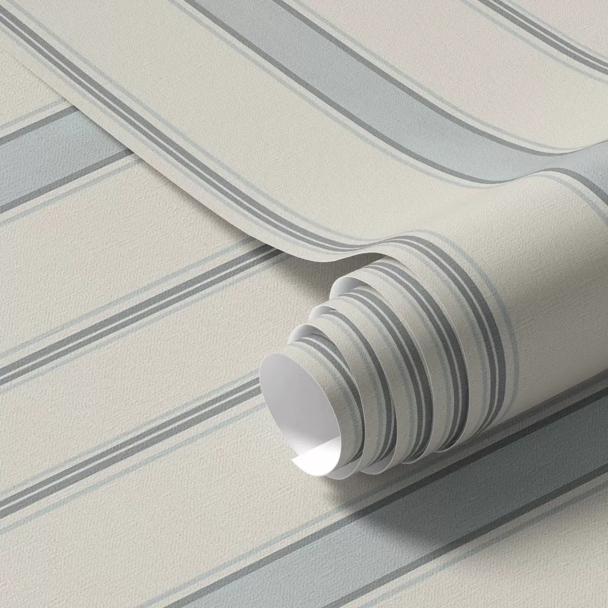 Tapetes Zilas un pelēkas svītras uz krēmkrāsas fona Nr. a00555
