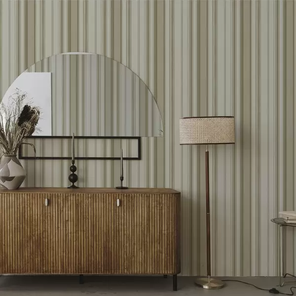 Tapetes Krēmkrāsas fons ar pelēkbrūnām vertikālām svītrām Nr. a00564