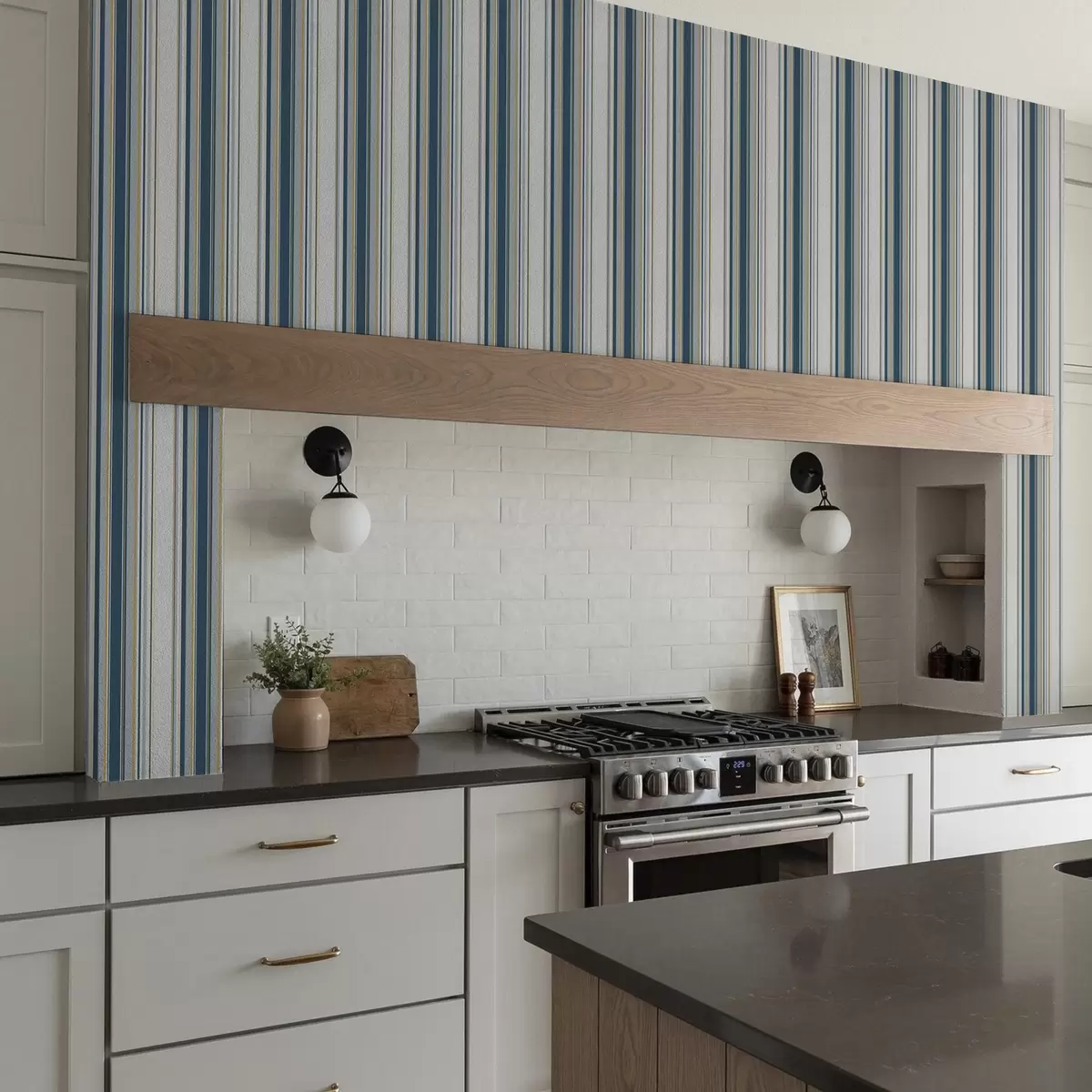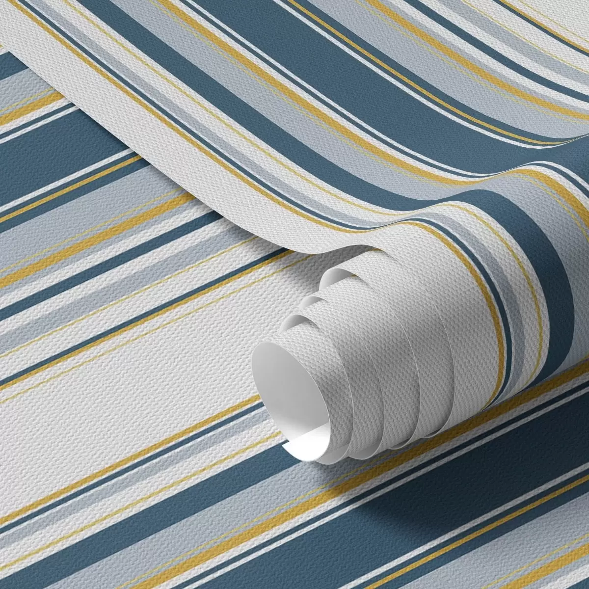 Tapetes Kontrastējošas zilas un dzeltenas svītras uz balta fona Nr. a00566