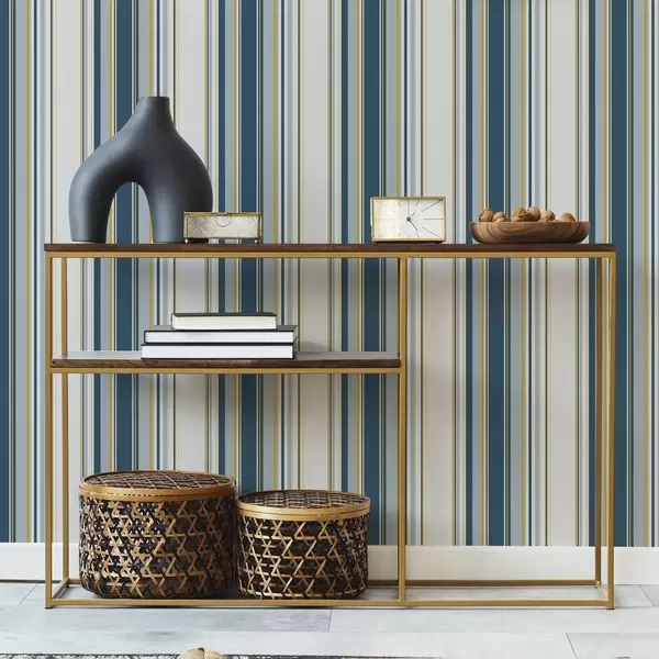 Tapetes Kontrastējošas zilas un dzeltenas svītras uz balta fona Nr. a00566