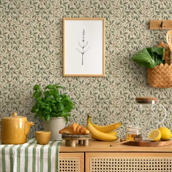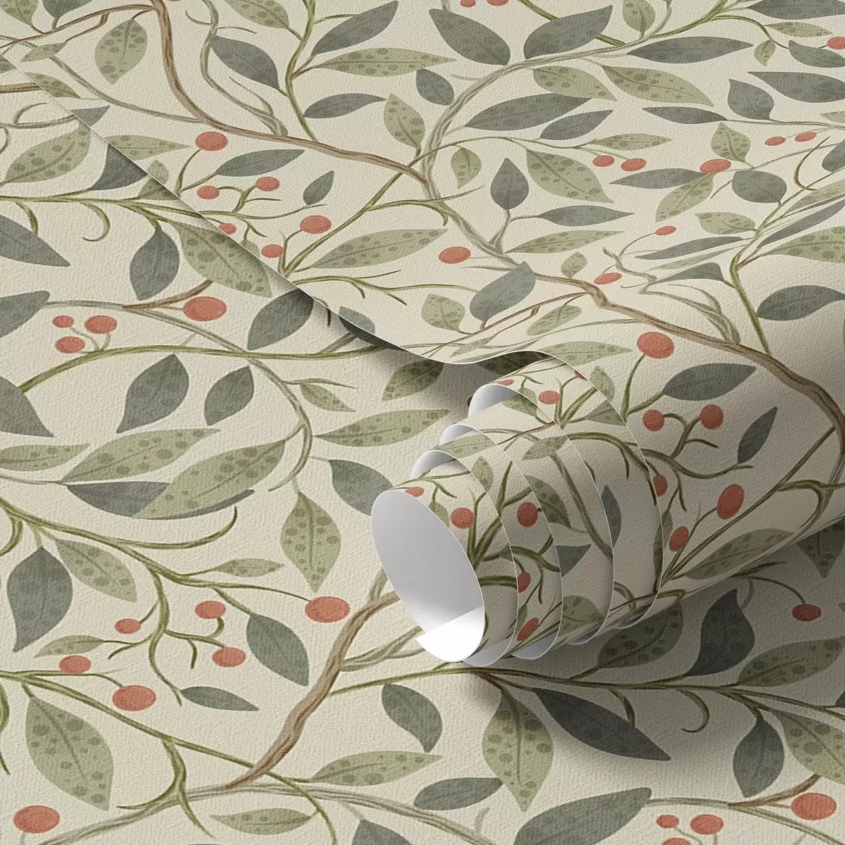 Tapetes Olīvu zari ar ogām uz siltā gaišā fona Nr. a00573