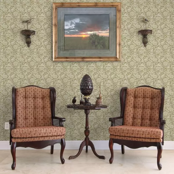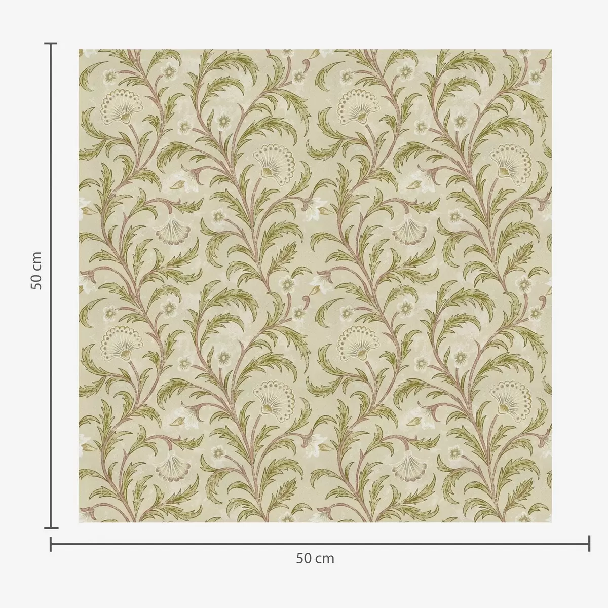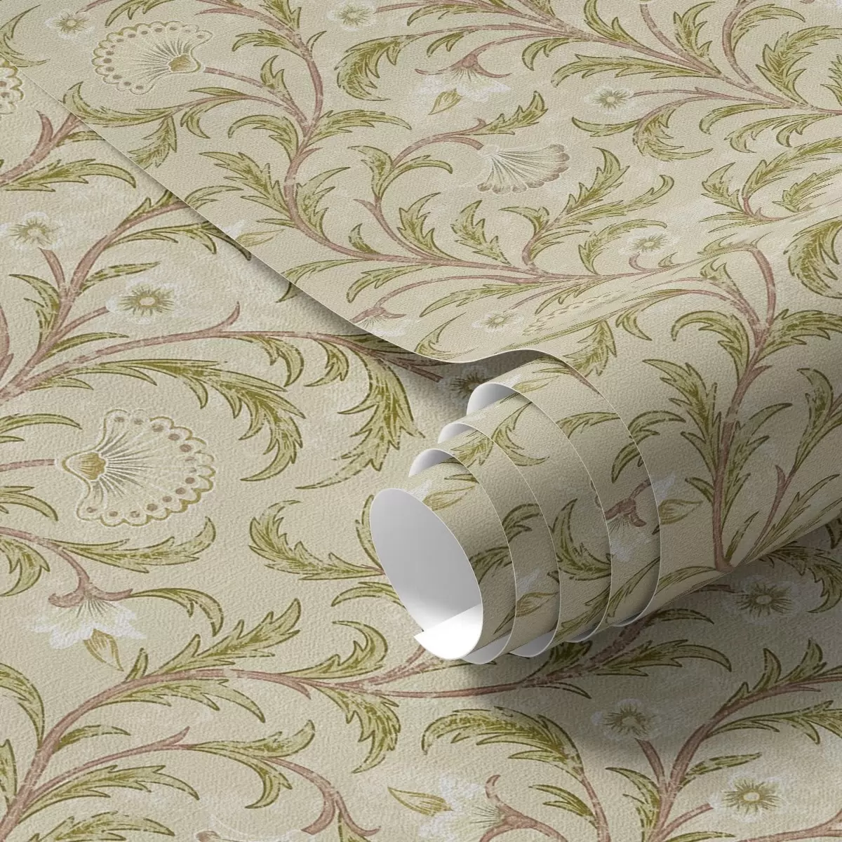Tapetes Vintage ornament ar volūtām un ziediem, smilškrāsas un olīvu krāsā Nr. a00574