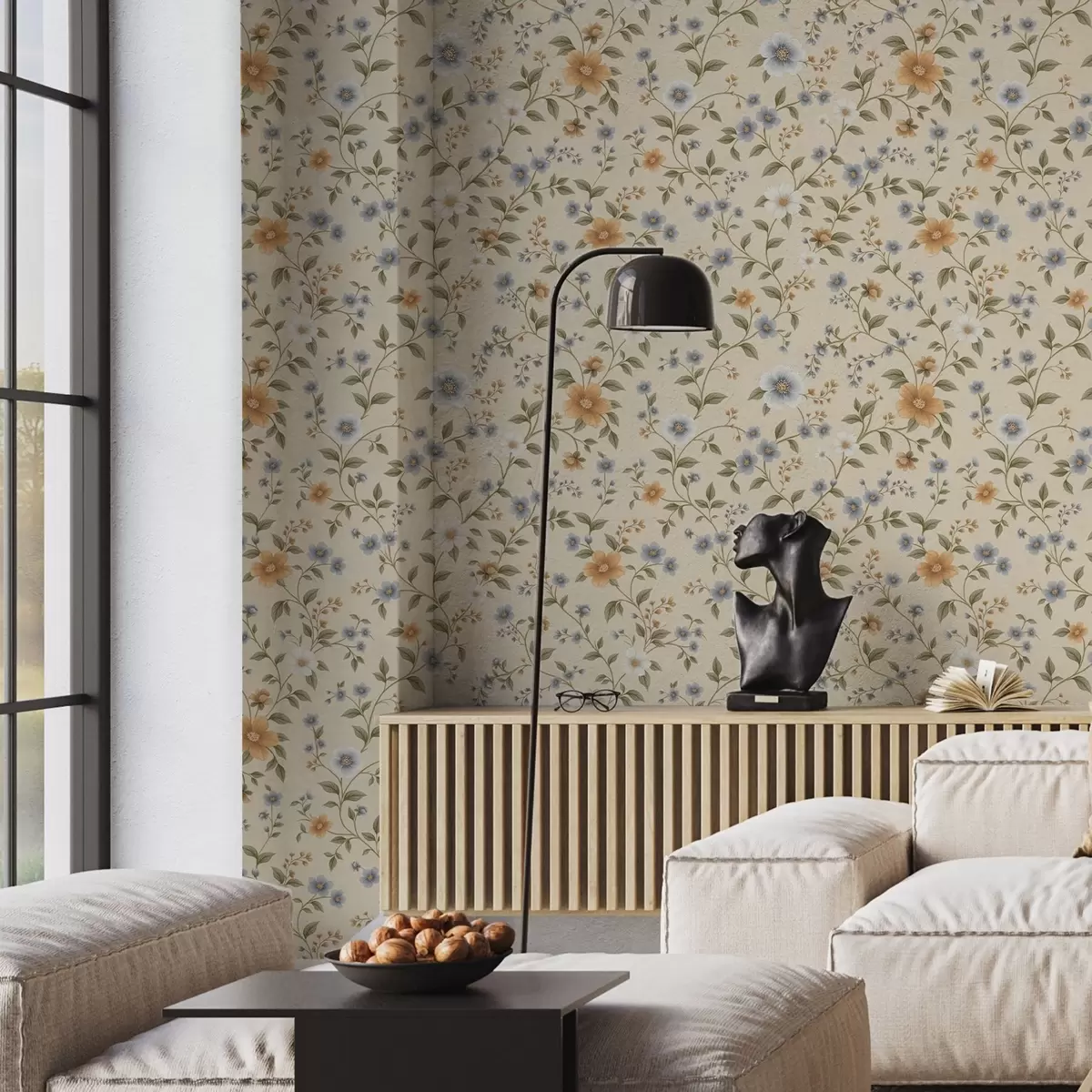 Tapetes Ziedu zari ar ziliem un persiku krāsas ziediem Nr. a00575
