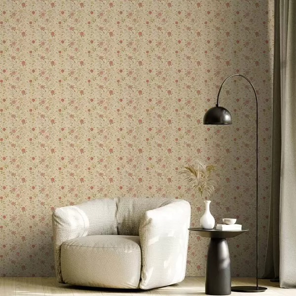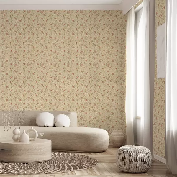 Tapetes Vintage rozes persiku un dzeltenā krāsā uz krēmkrāsas fona Nr. a00577