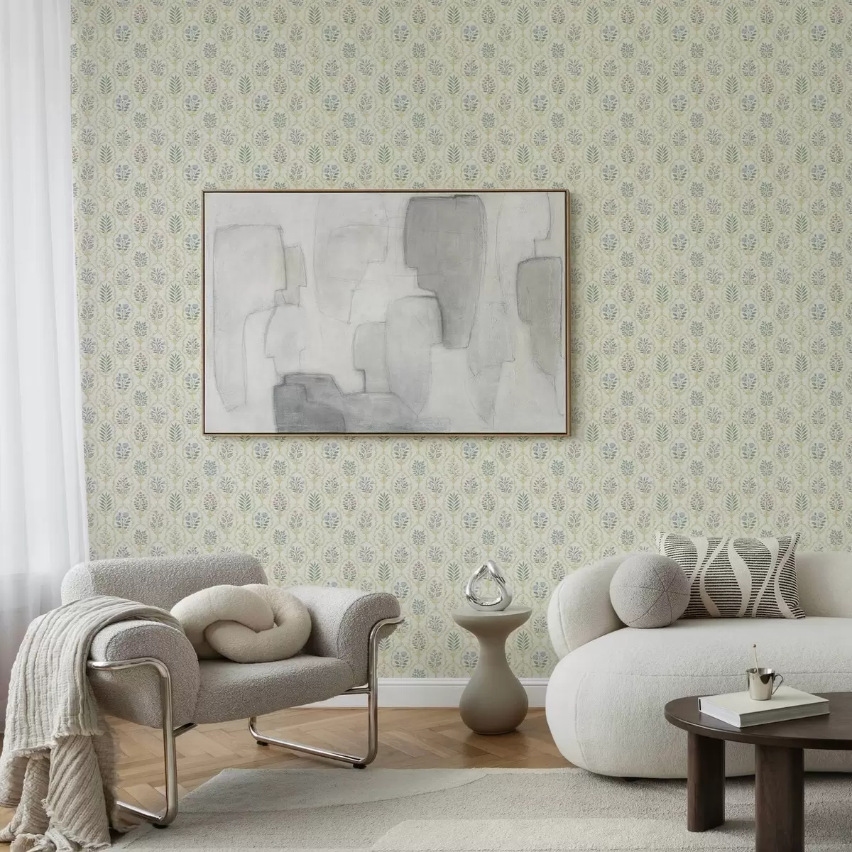 Tapetes Botāniski medaljoni režģī, pasteļtoņos Nr. a00579