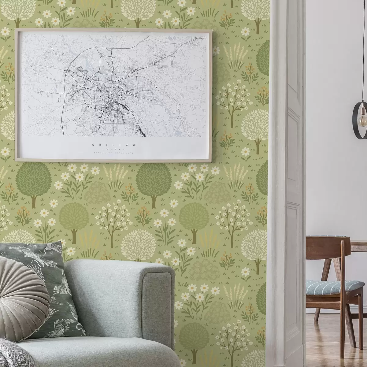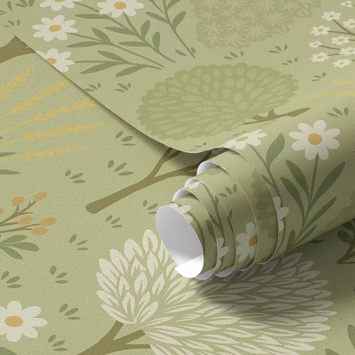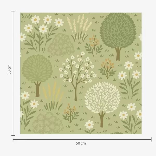 Tapetes Bērnu zaļais dārzs: koki, ziedi un kvieši Nr. a00586