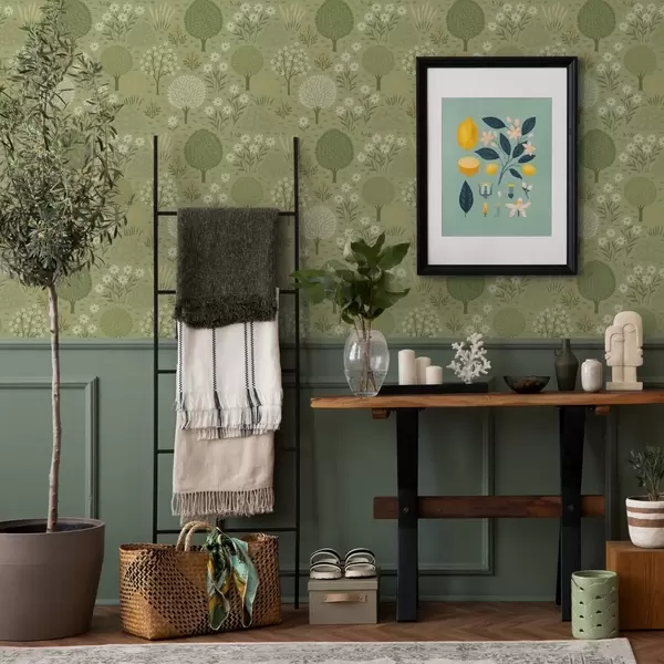 Tapetes Bērnu zaļais dārzs: koki, ziedi un kvieši Nr. a00586