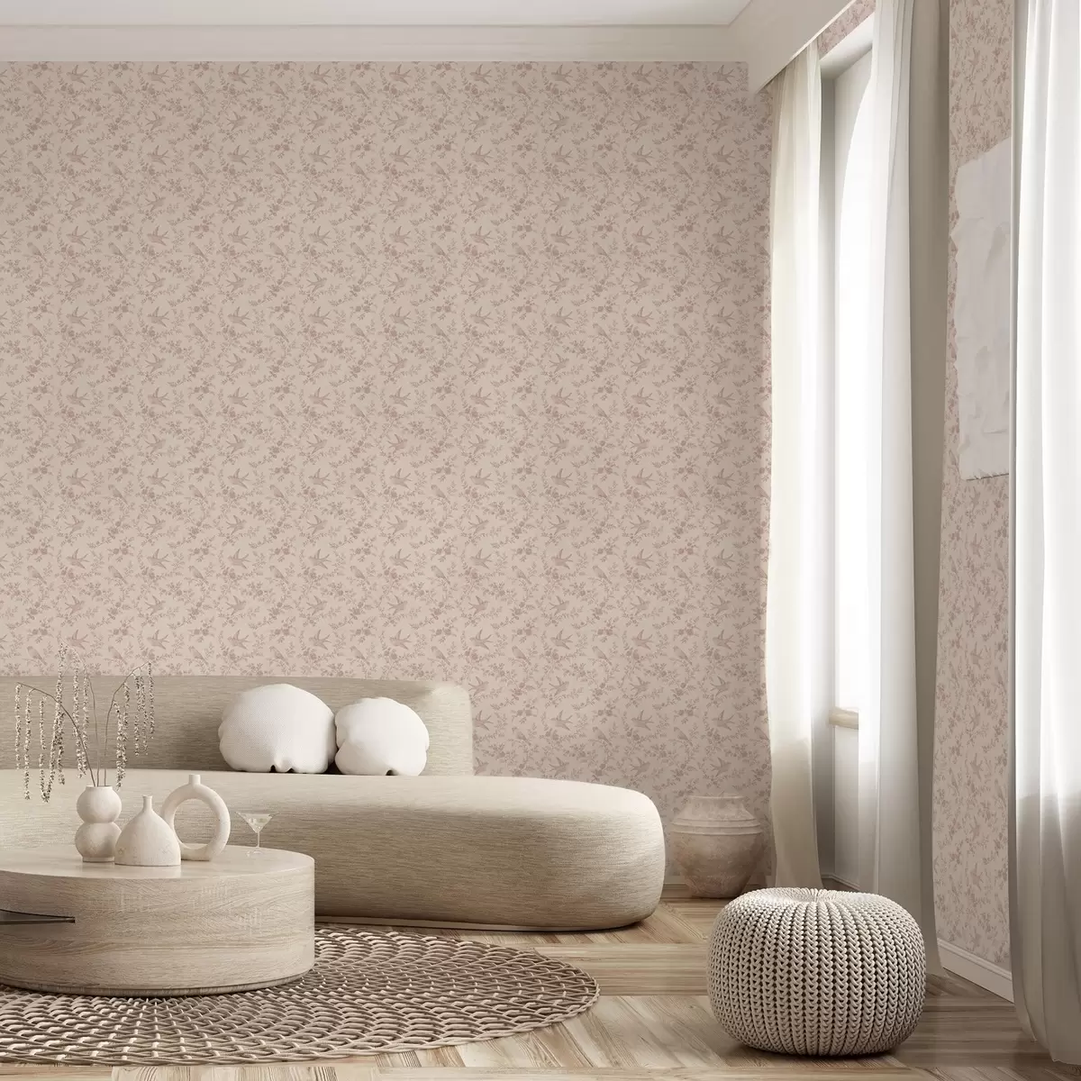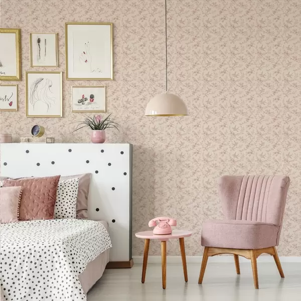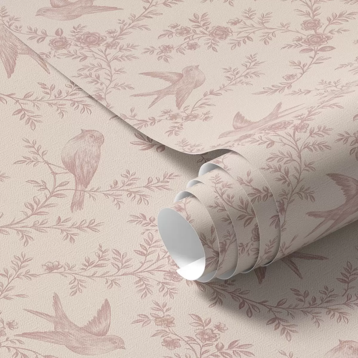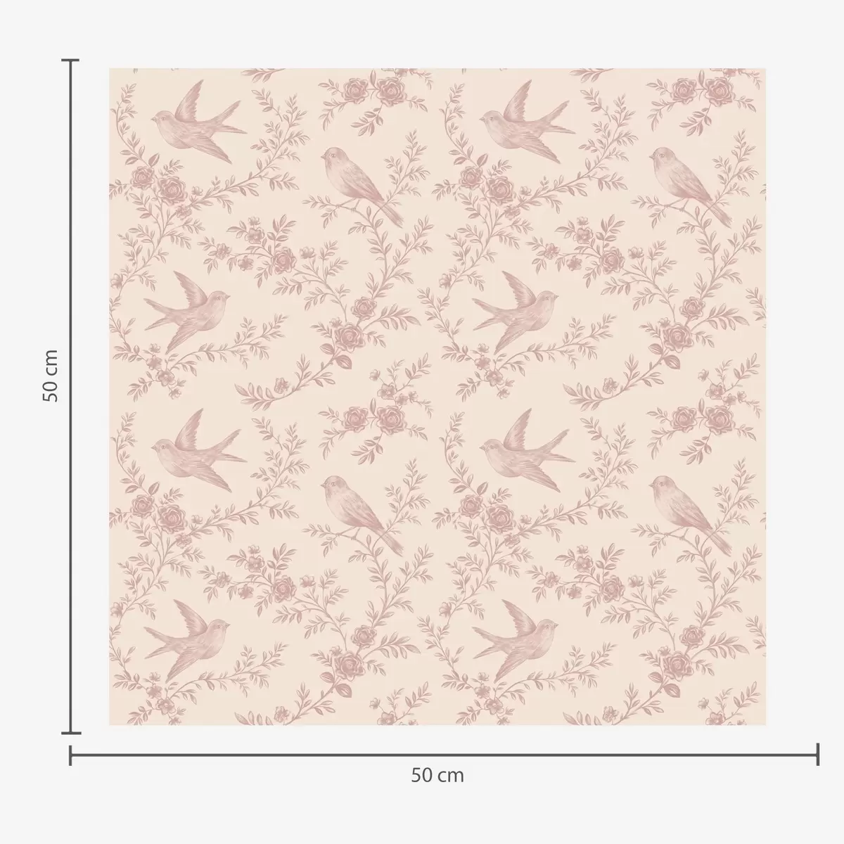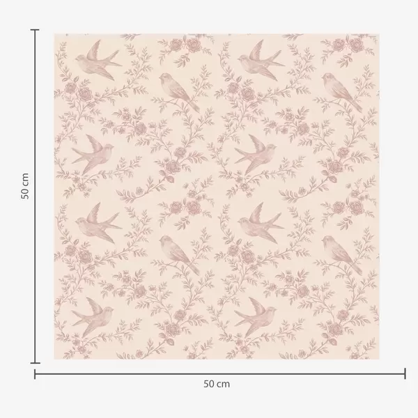 Tapetes Putni un rozes, vintage raksts uz pūderrozā fona Nr. a00587