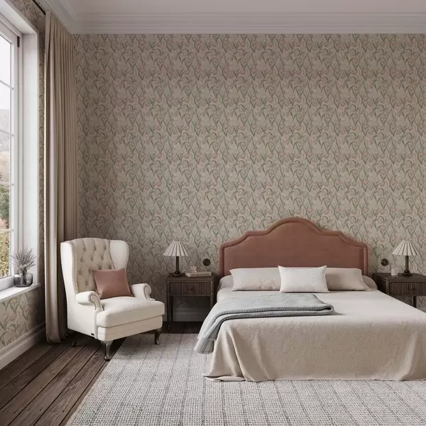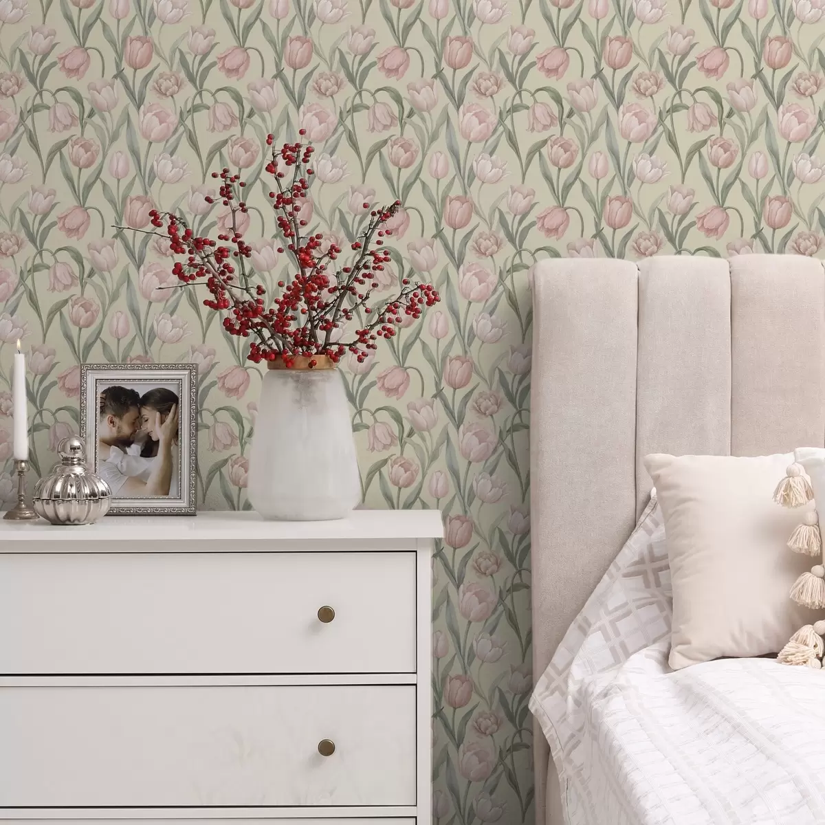 Tapetes Maigi rozā tulpes uz maiga smilškrāsas fona a00589