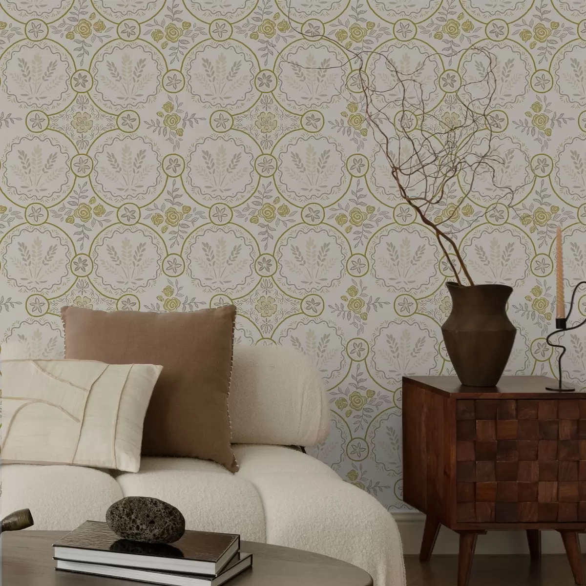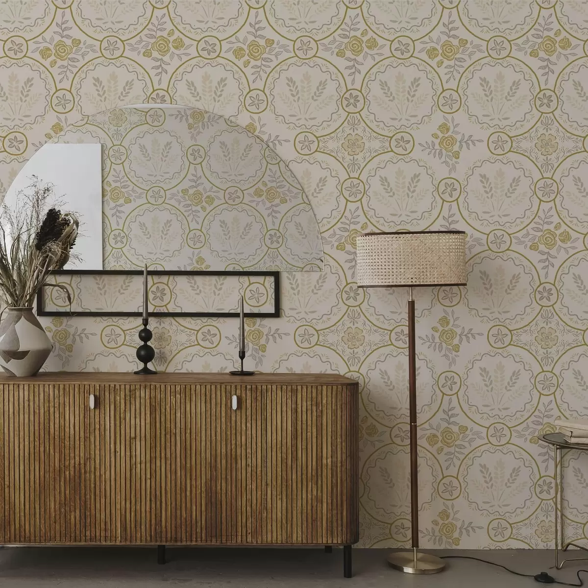 Tapetes Retro ornamenti ar kviešiem un rozēm Nr. a00595