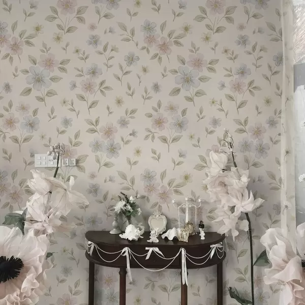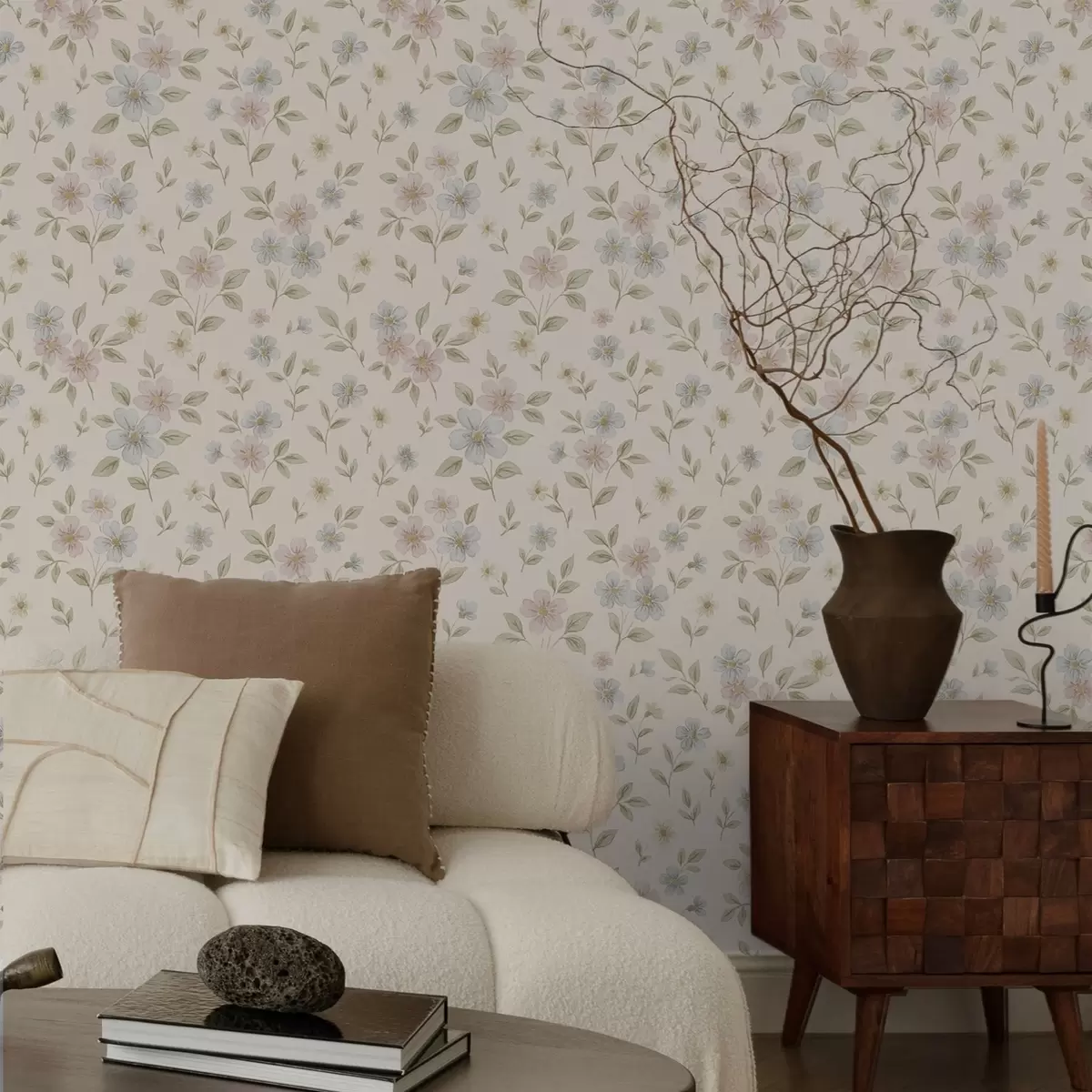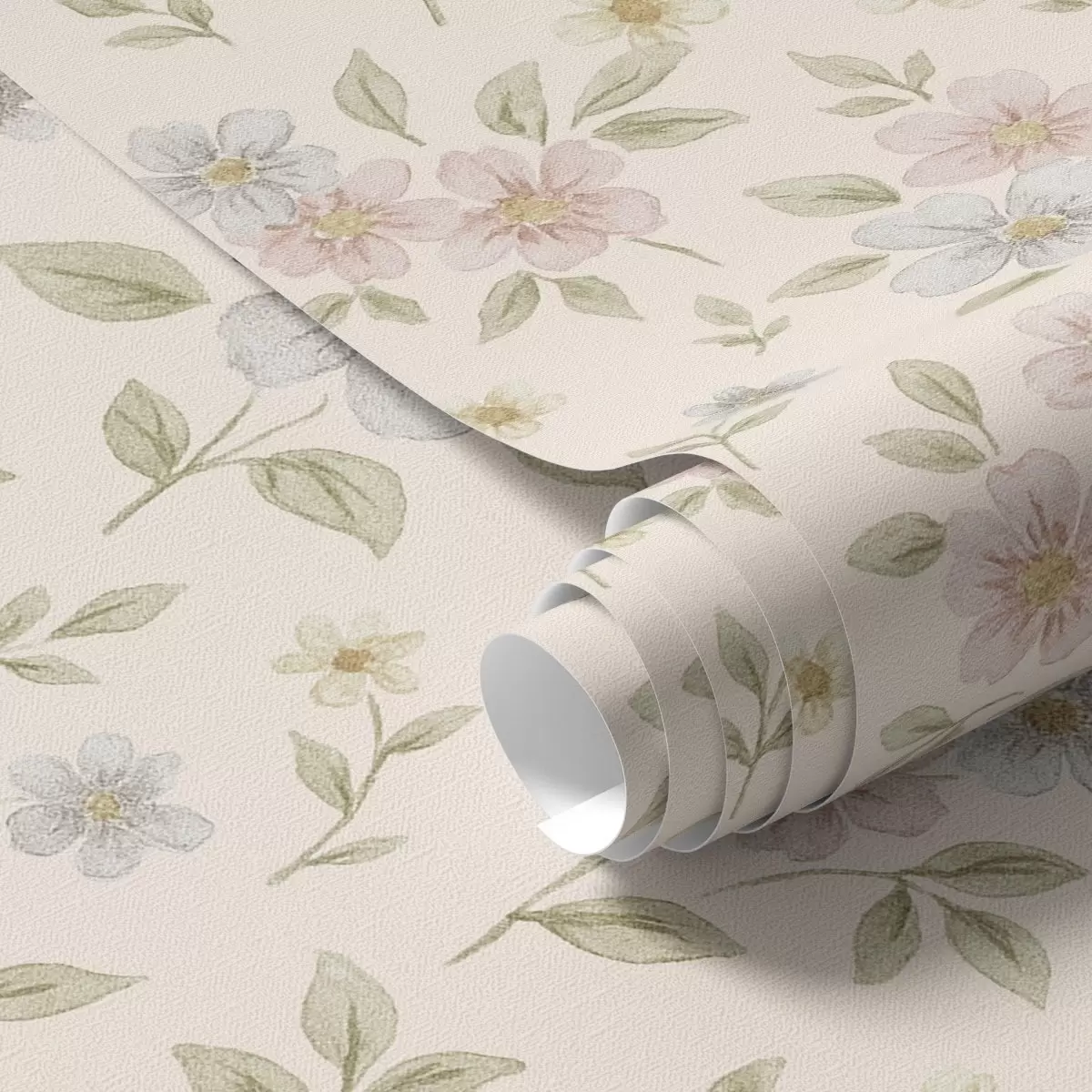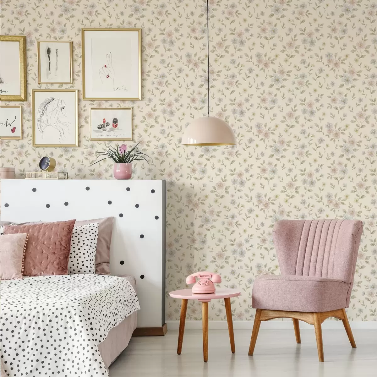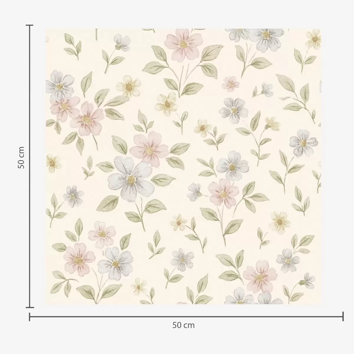 Tapetes Pastelkrāsas pļavas ziedi uz krēmkrāsas fona Nr. a00596