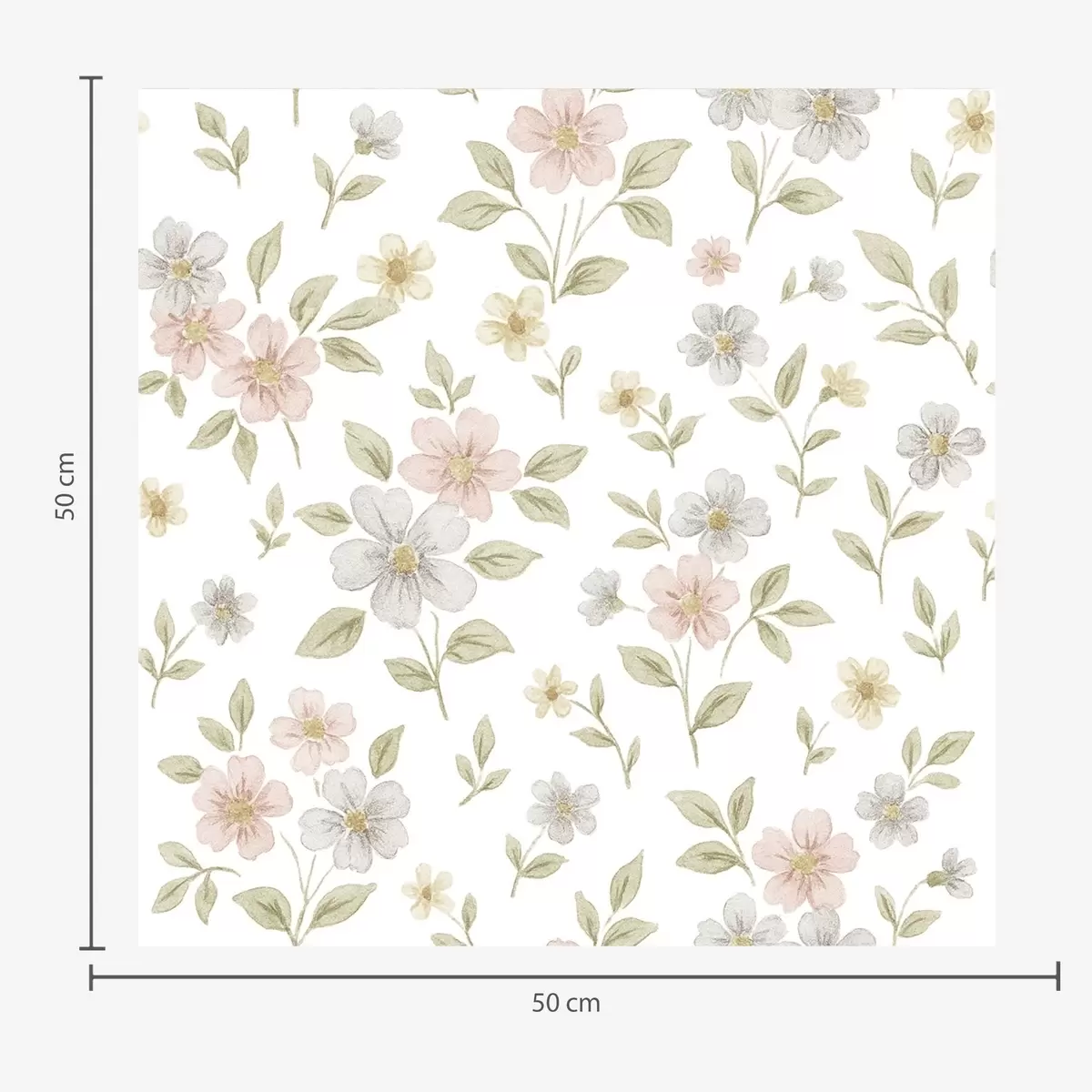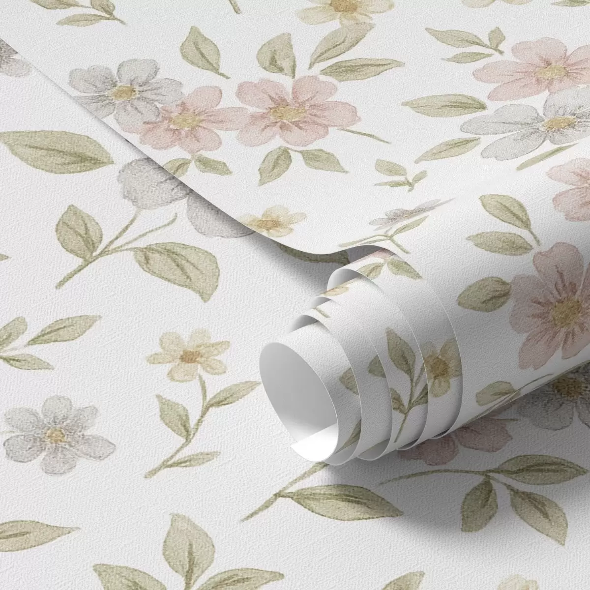 Tapetes Mazie akvareļu ziedi pasteļtoņos uz balta fona Nr. a00596v1