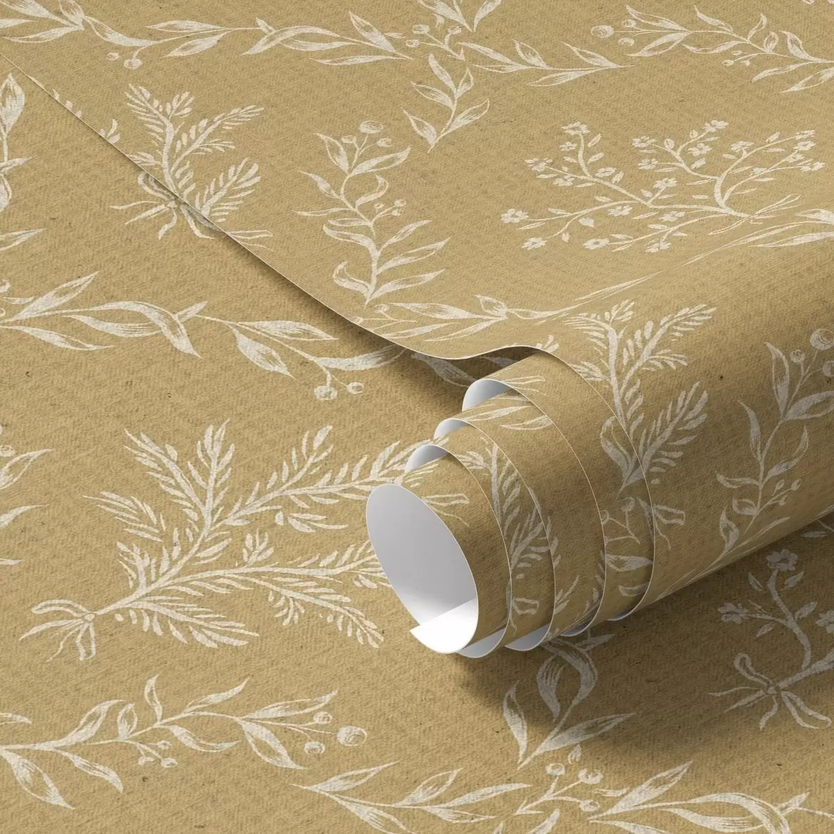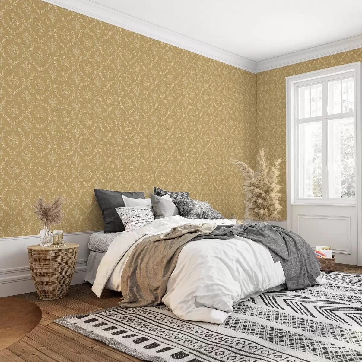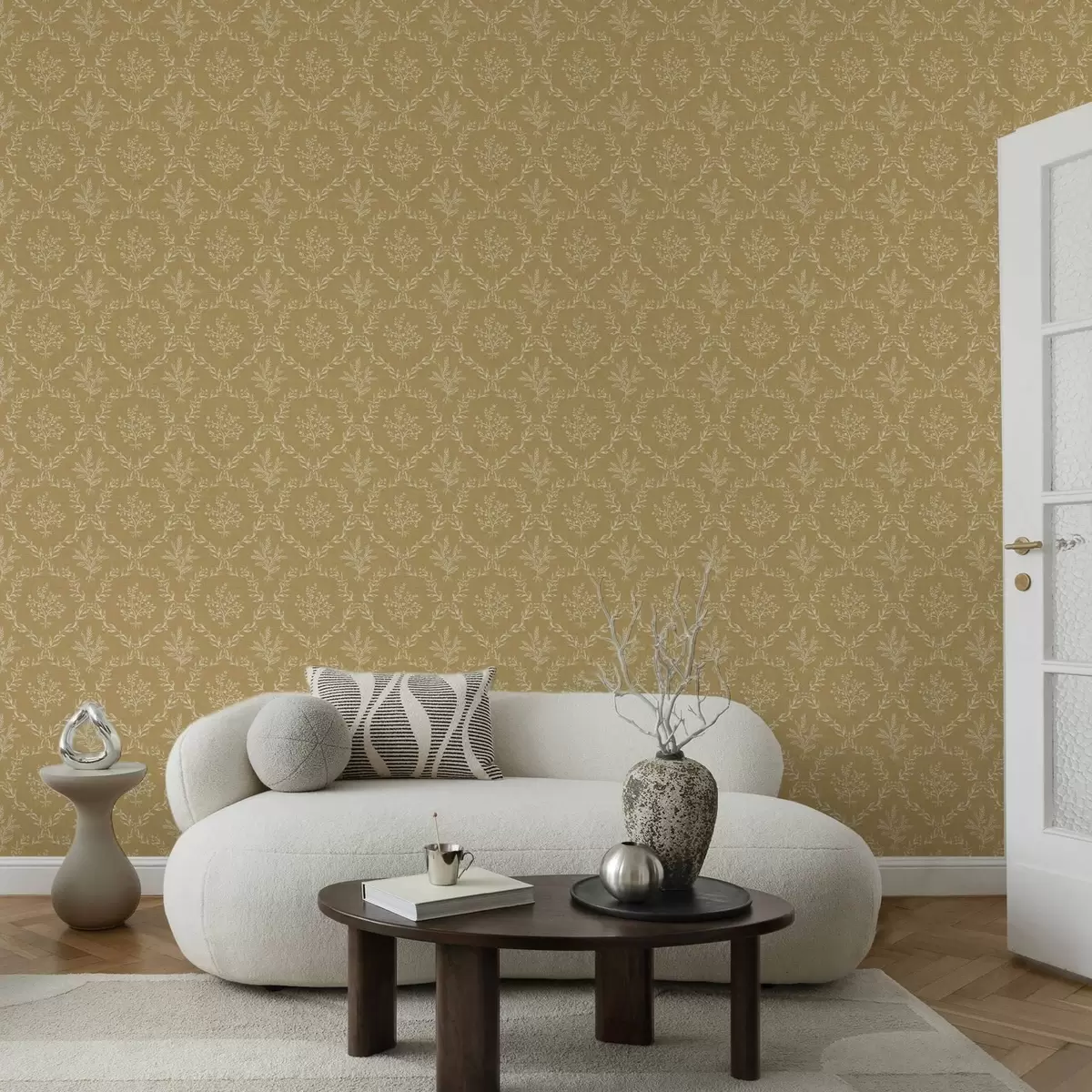 Tapetes Baltas zāļu un ziedu vainagi uz sinepju fona Nr. a00599