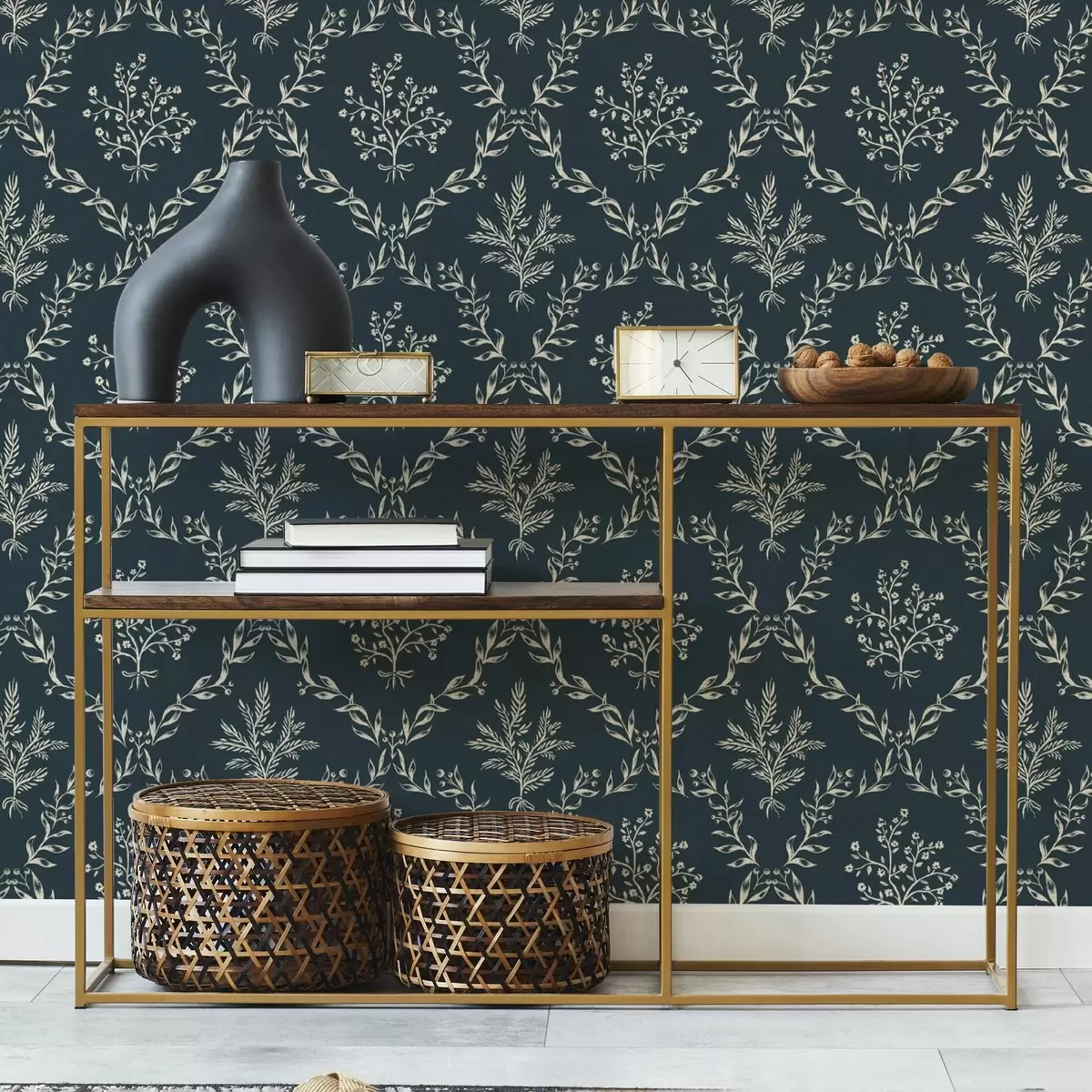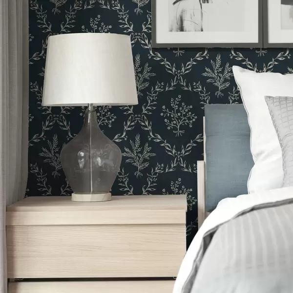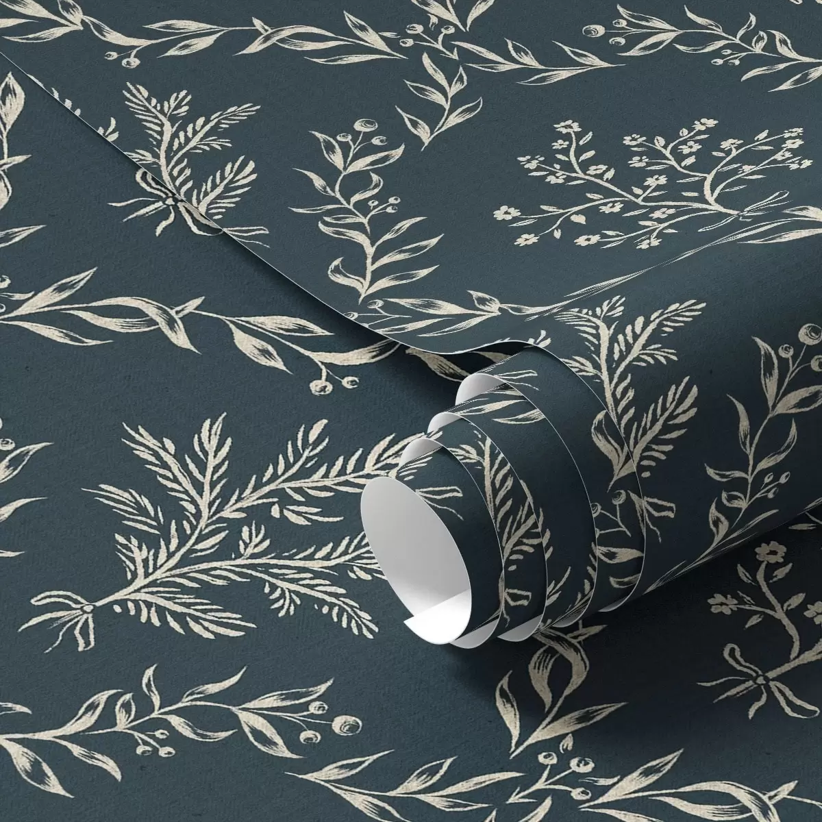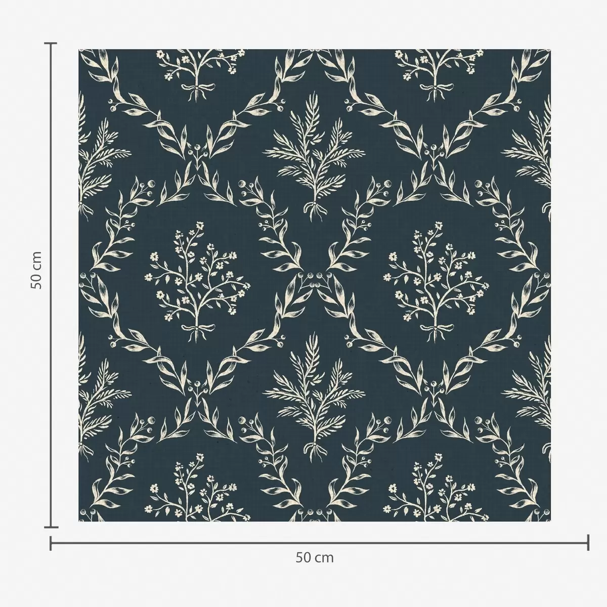 Tapetes Baltas zāļu un ziedu vainagi uz tumši zaļgani zilā fona Nr. a00599v2