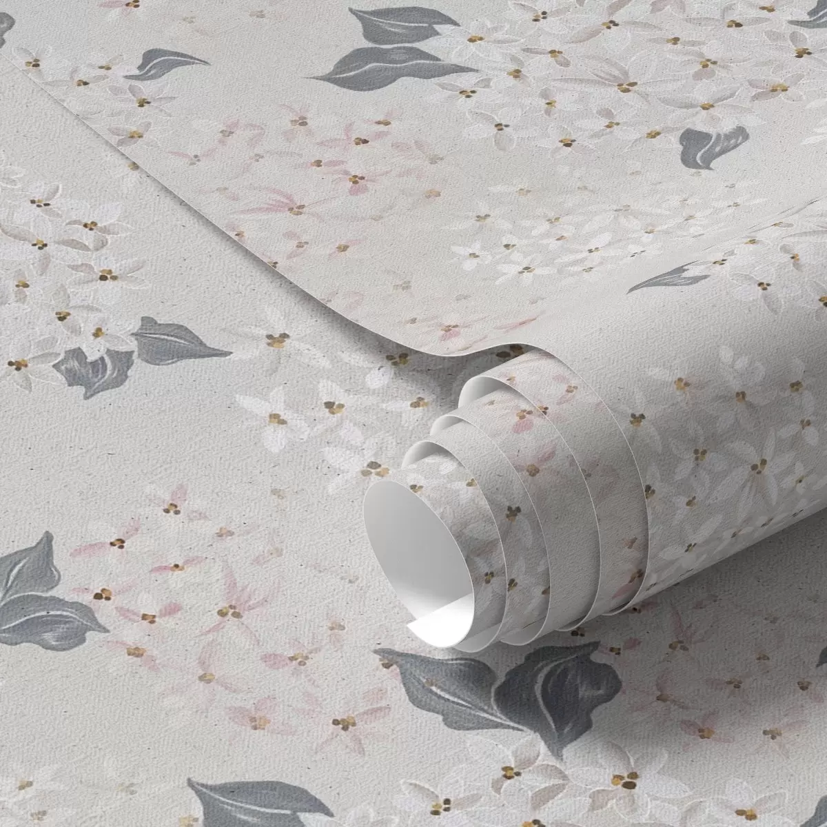 Tapetes Gaisīgi ziedi uz gaiša fona, maigi rozā-pelēki toņi Nr. a00600