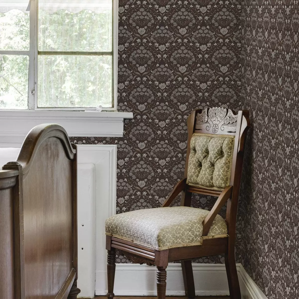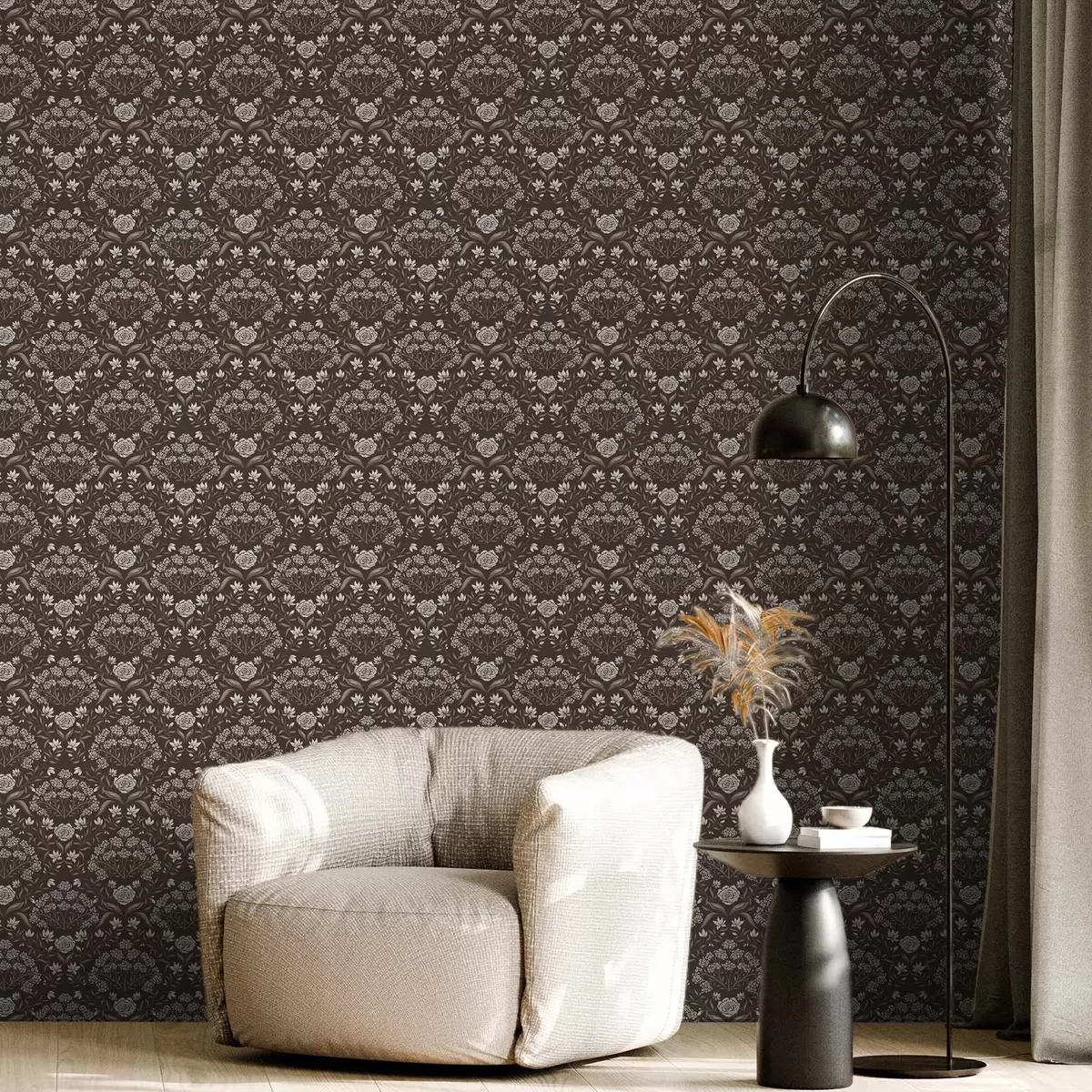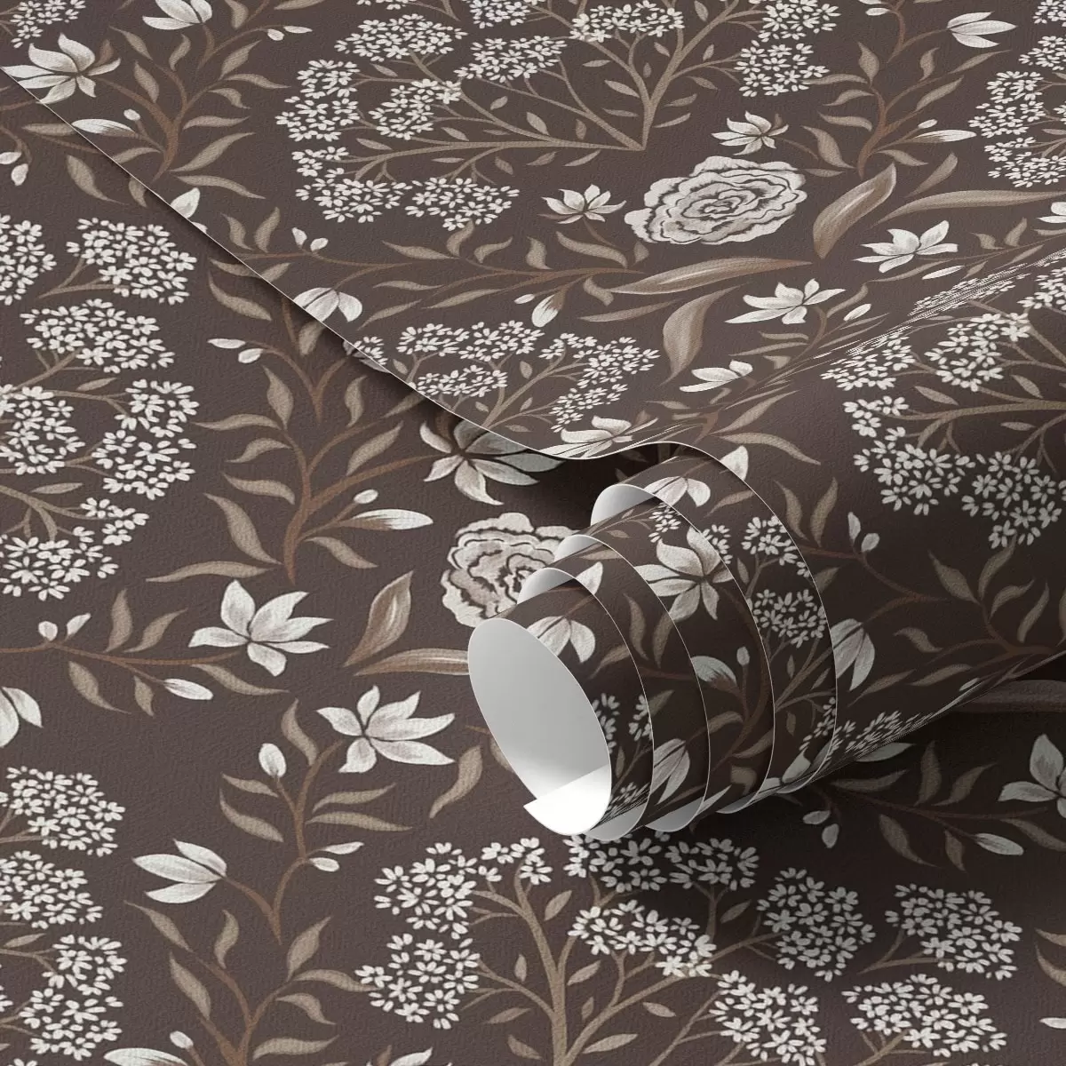 Tapetes Tumšā šokolāde ar peonijām un sniegpulkstenītēm a00603v2