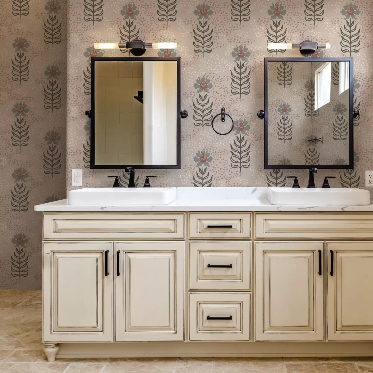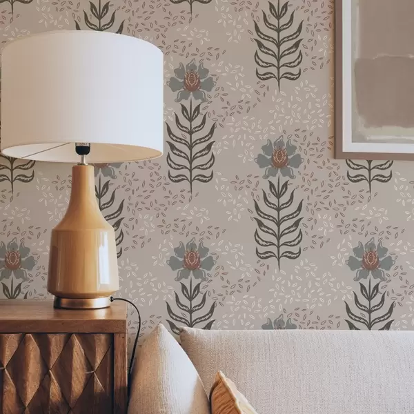 Tapetes Stilizēti ziedi un sēklas uz siltā smilškrāsā fona Nr. a00604