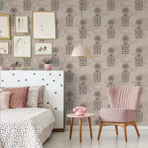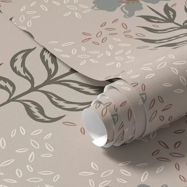 Tapetes Stilizēti ziedi un sēklas uz siltā smilškrāsā fona Nr. a00604