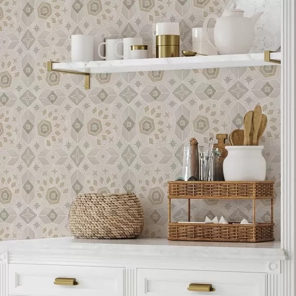 Tapetes Ģeometrisks mozaīkas raksts siltos smilškrāsas toņos Nr. a00606