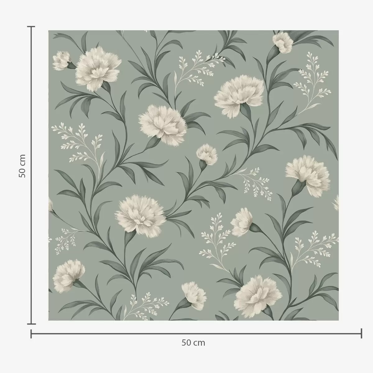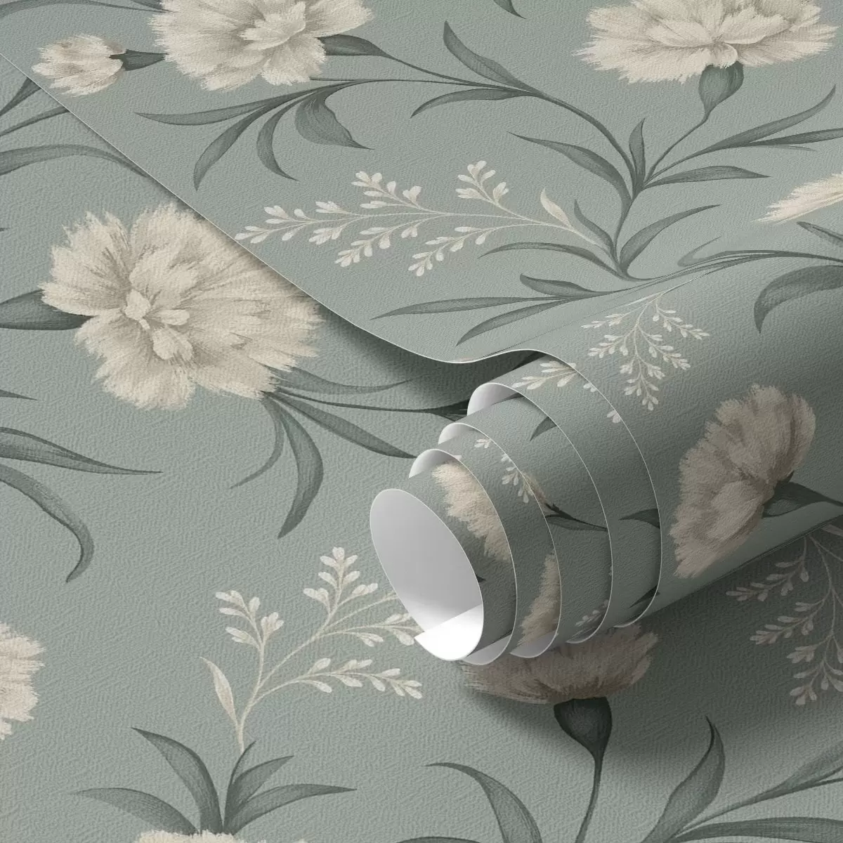 Tapetes Pūderveida neļķes uz pelēkzaļgana fona, izsmalcināts apdruka Nr. a00610