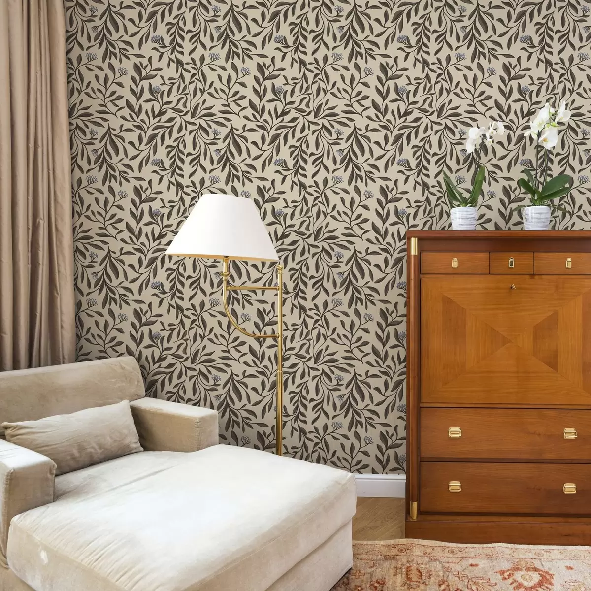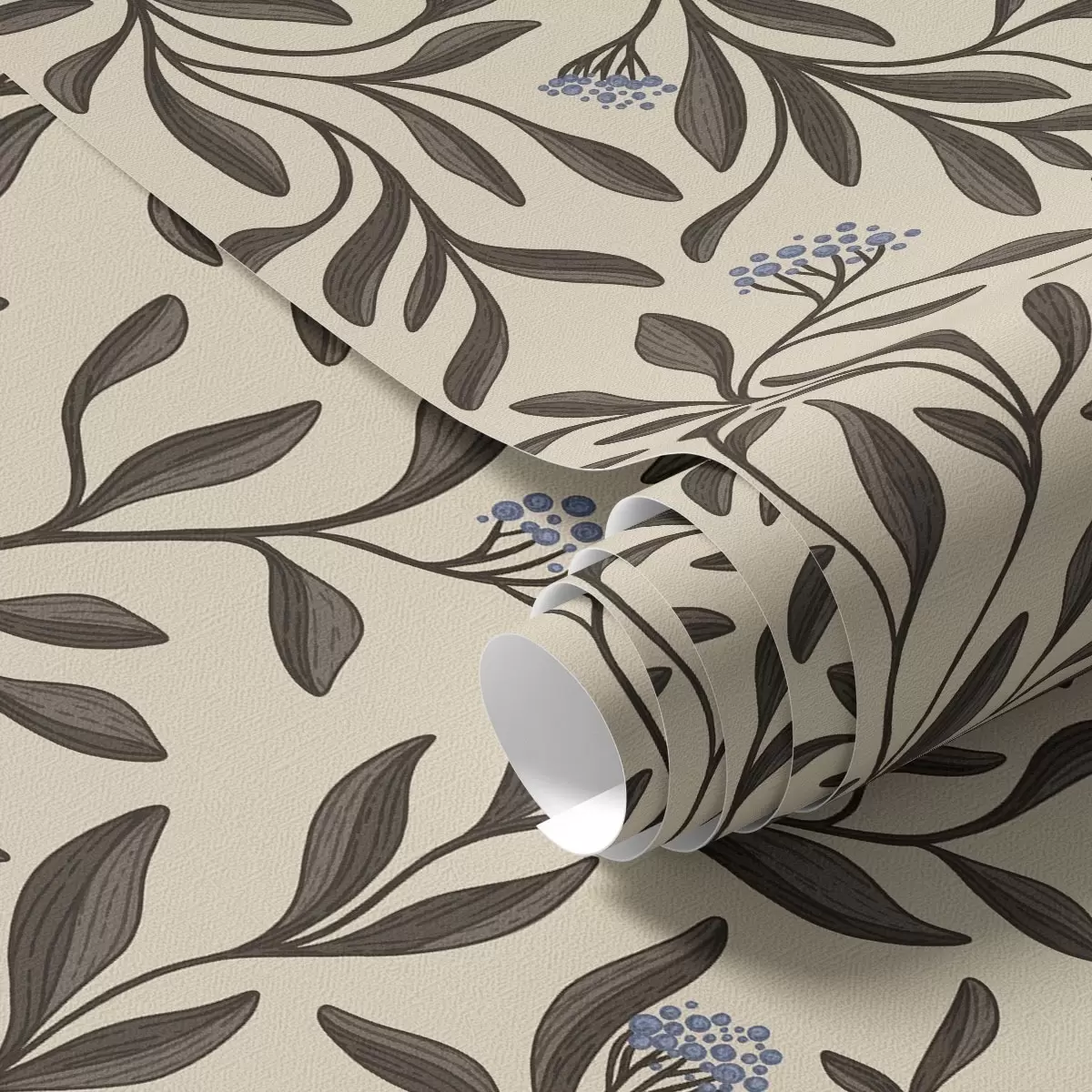 Tapetes Šokolādes zari ar zilajām ogām uz siltā fona Nr. a00615